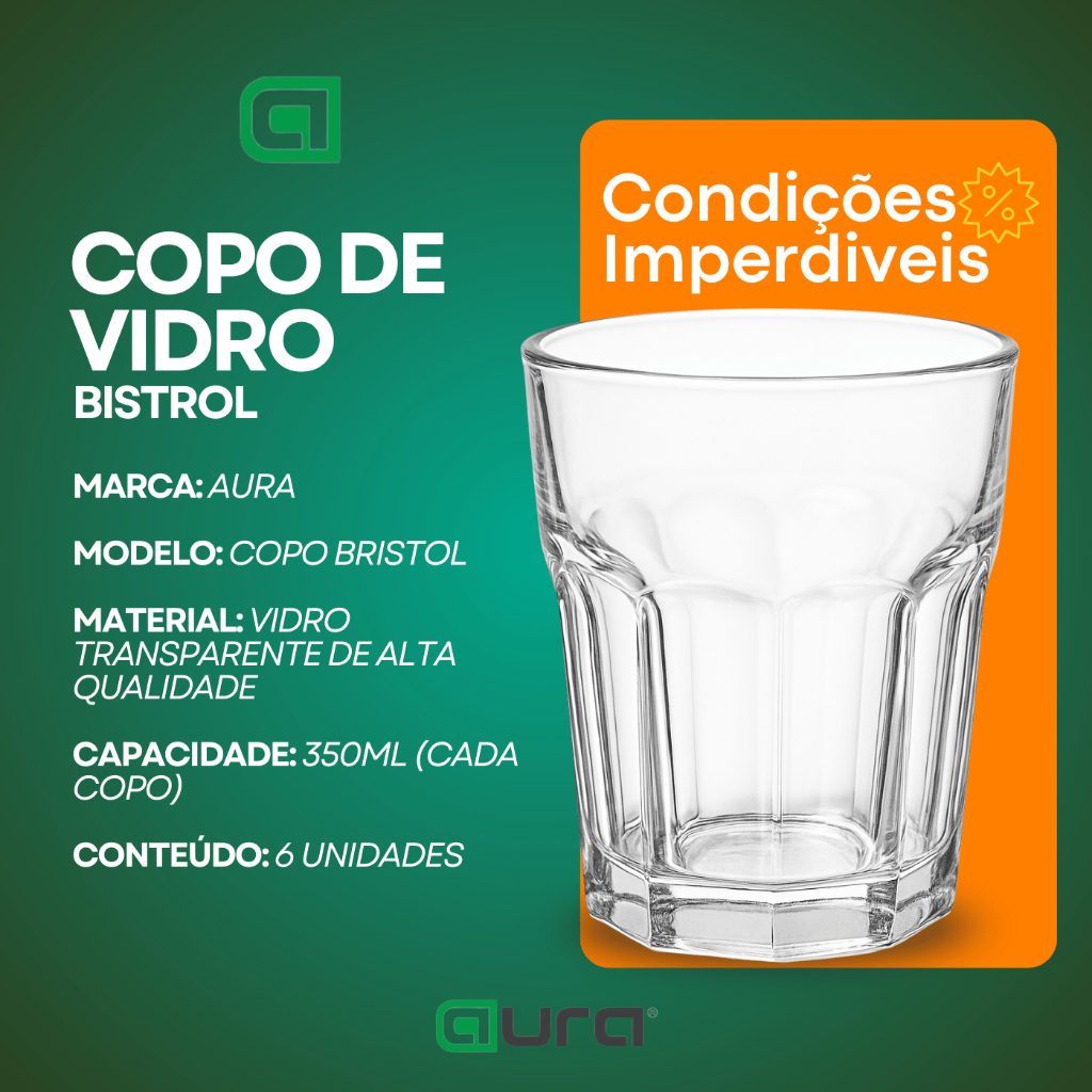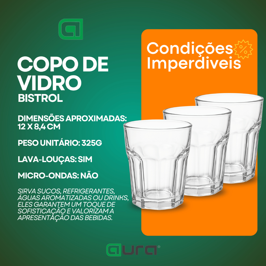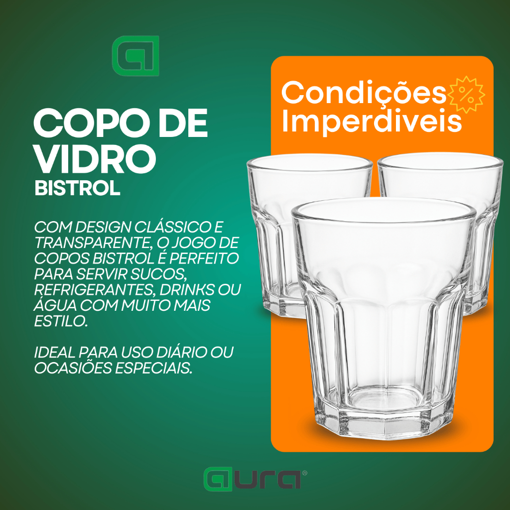 Jogo De Copos Vidro Suco Água Refri Vidro Reforçado