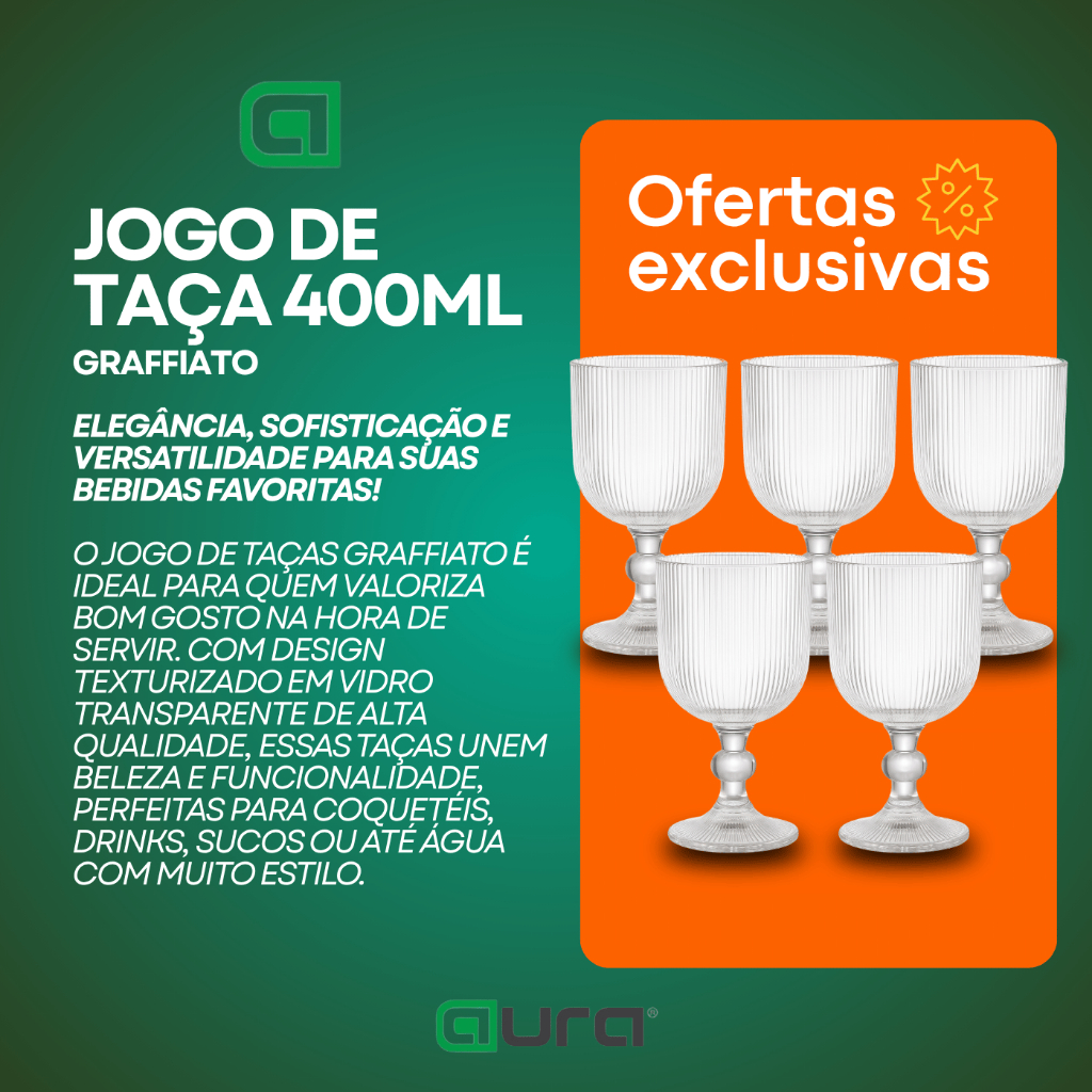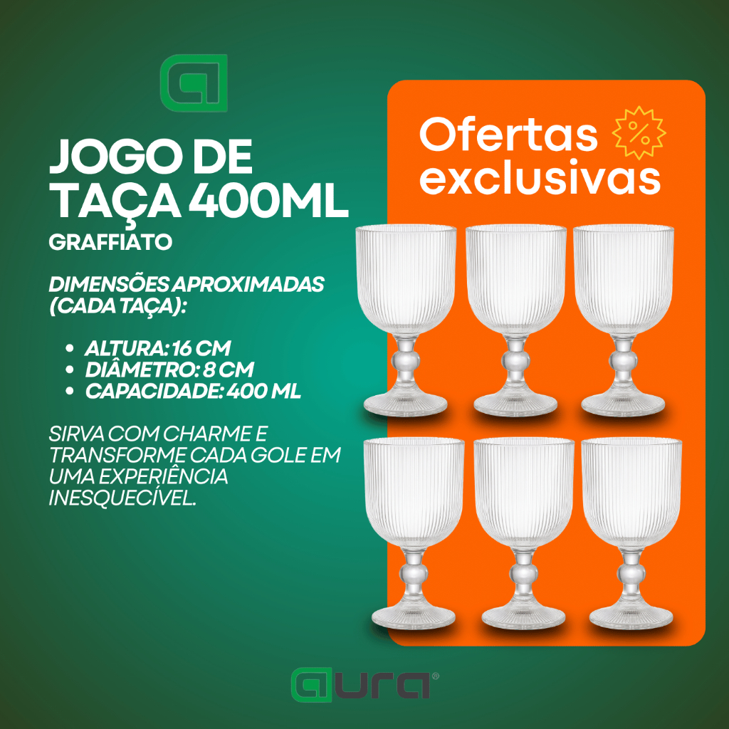 Jogo de 6 Taça Canelada Grafiato Sofia 400ml Copo Vidro Transparente Canelado