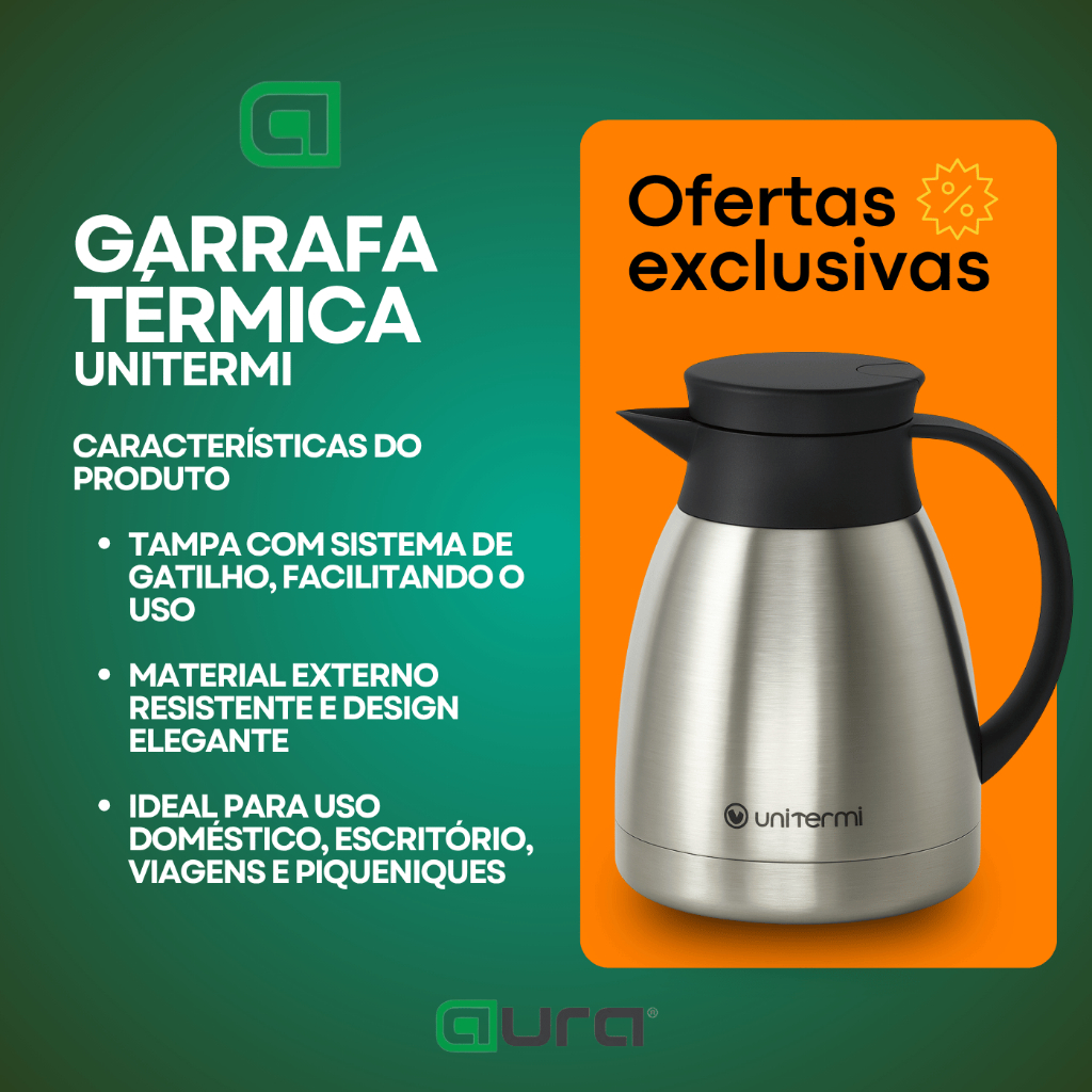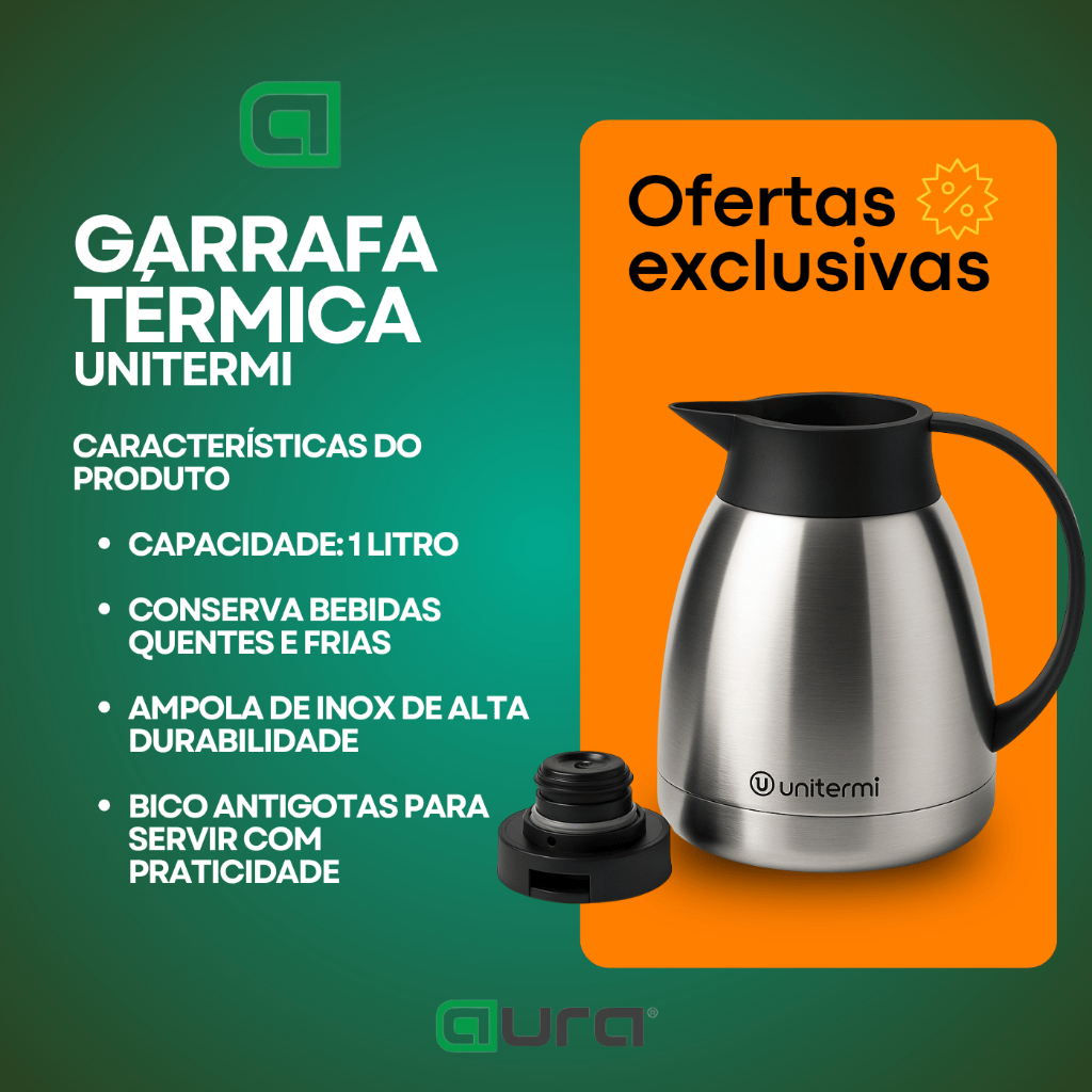 Garrafa Térmica em Inox 1 Litro Café Chá Unitermi Paris