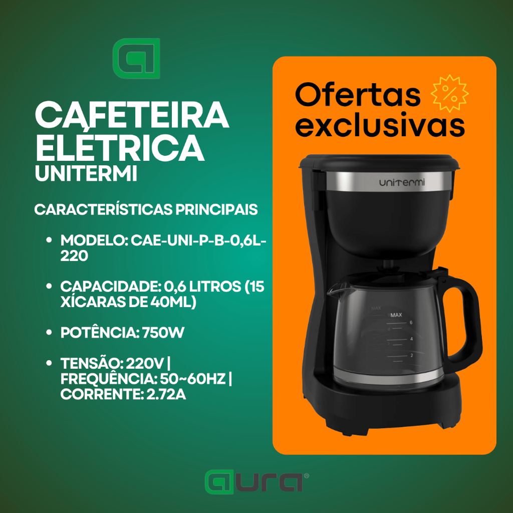 Cafeteira Elétrica 0,6 L 15 Xícaras Compacta Premiun 220V