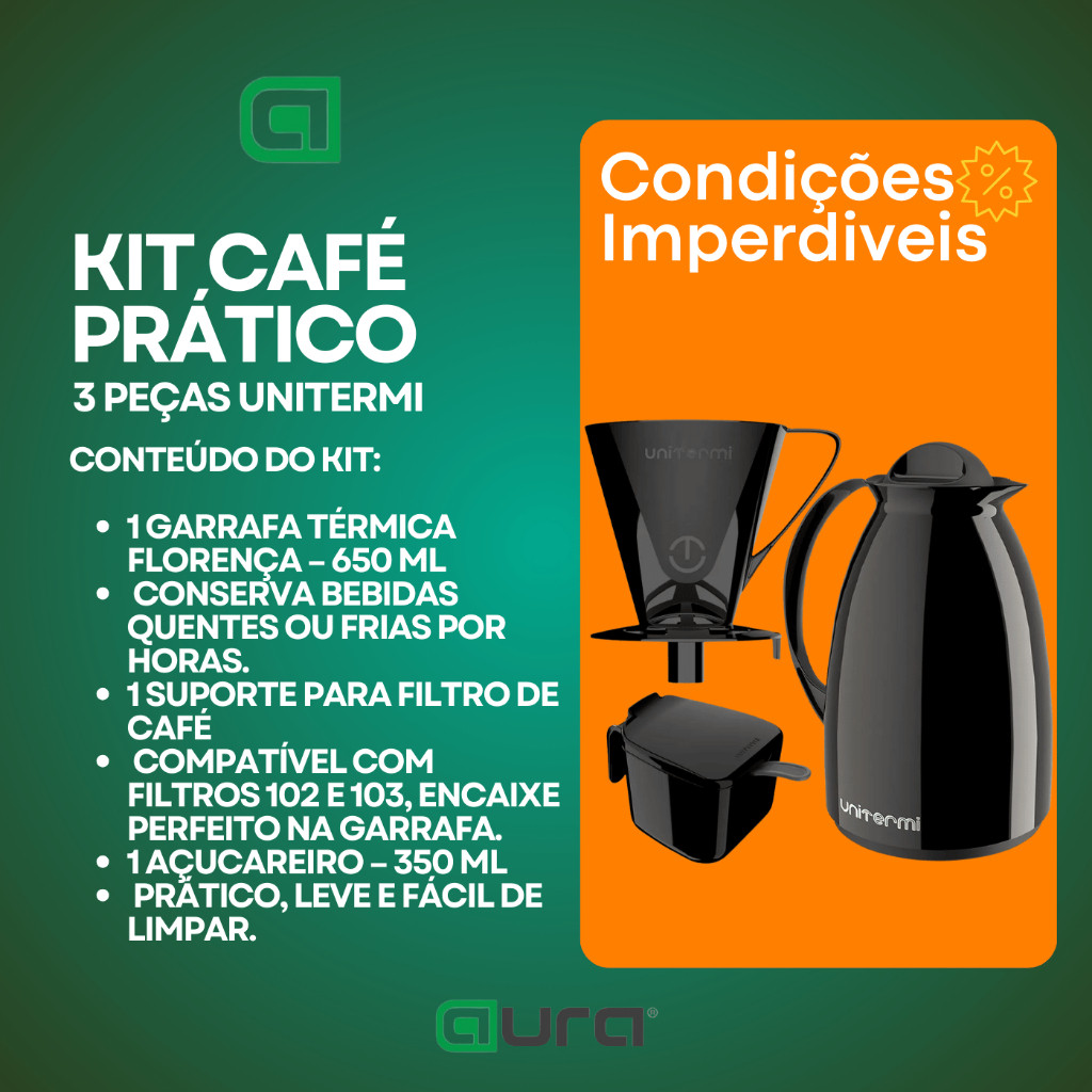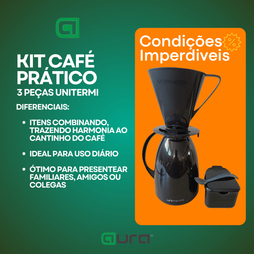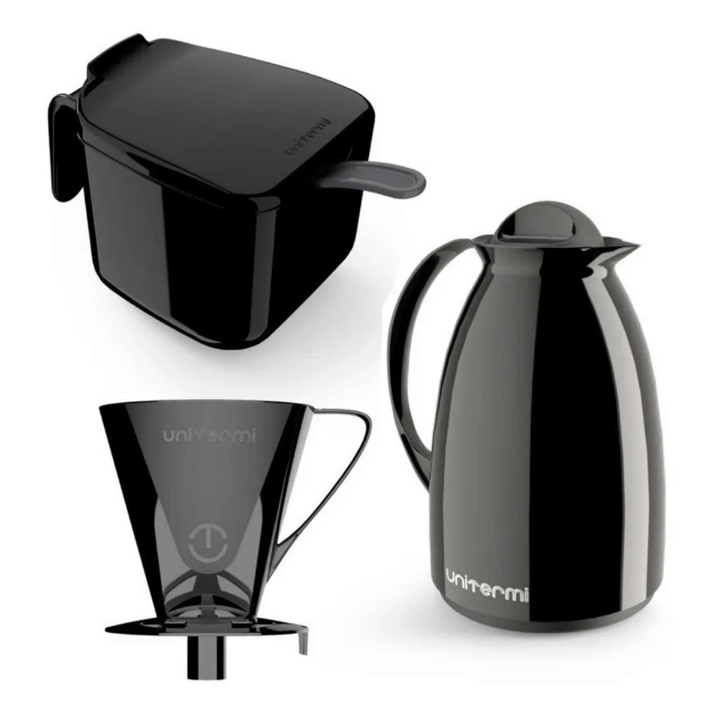 Kit Prático Para Café Garrafa + Açucareiro + Suporte Filtro Cor Preta