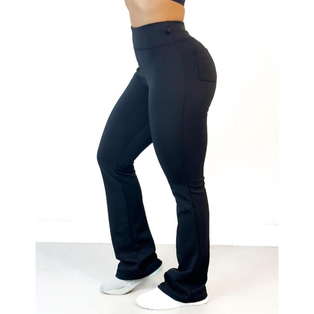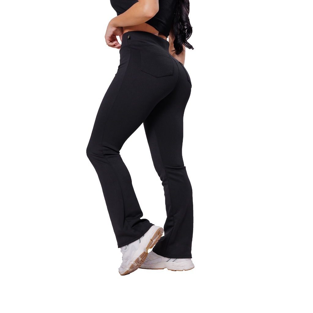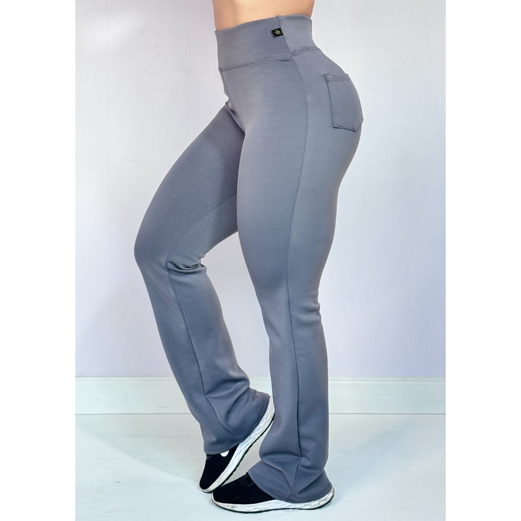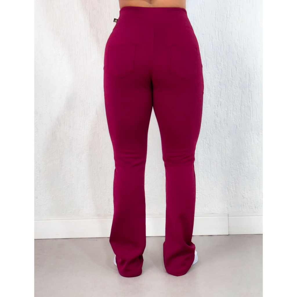 Calça Flare Bailarina Com Bolso Neoprene Feminino Cintura Alta