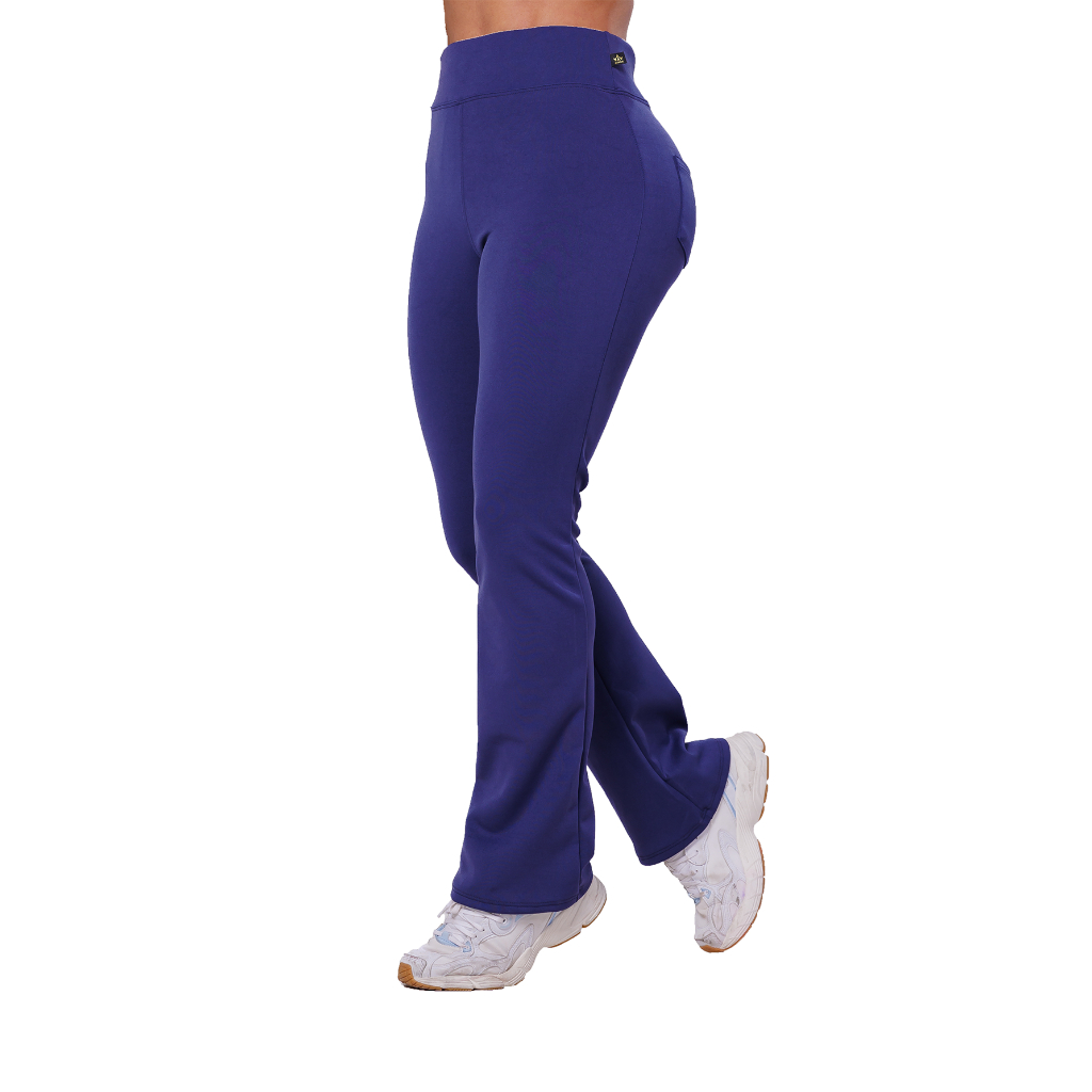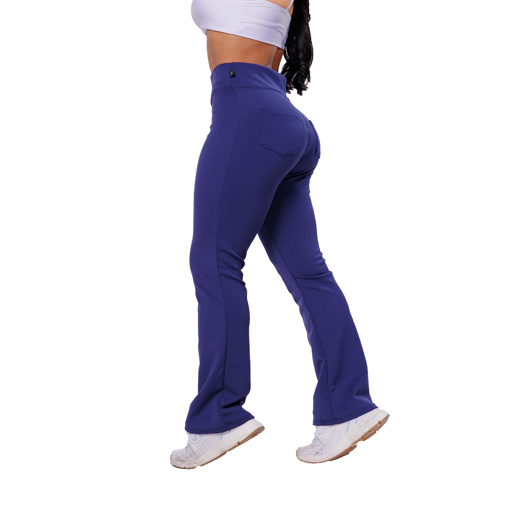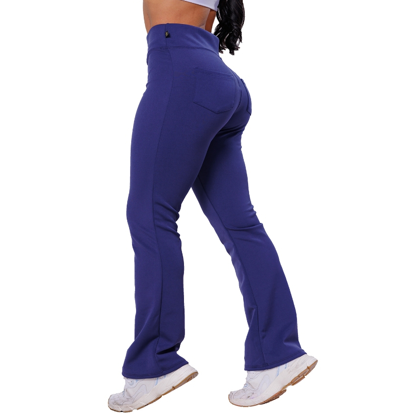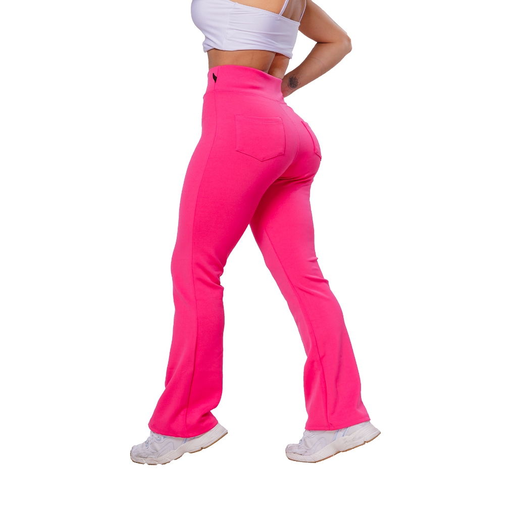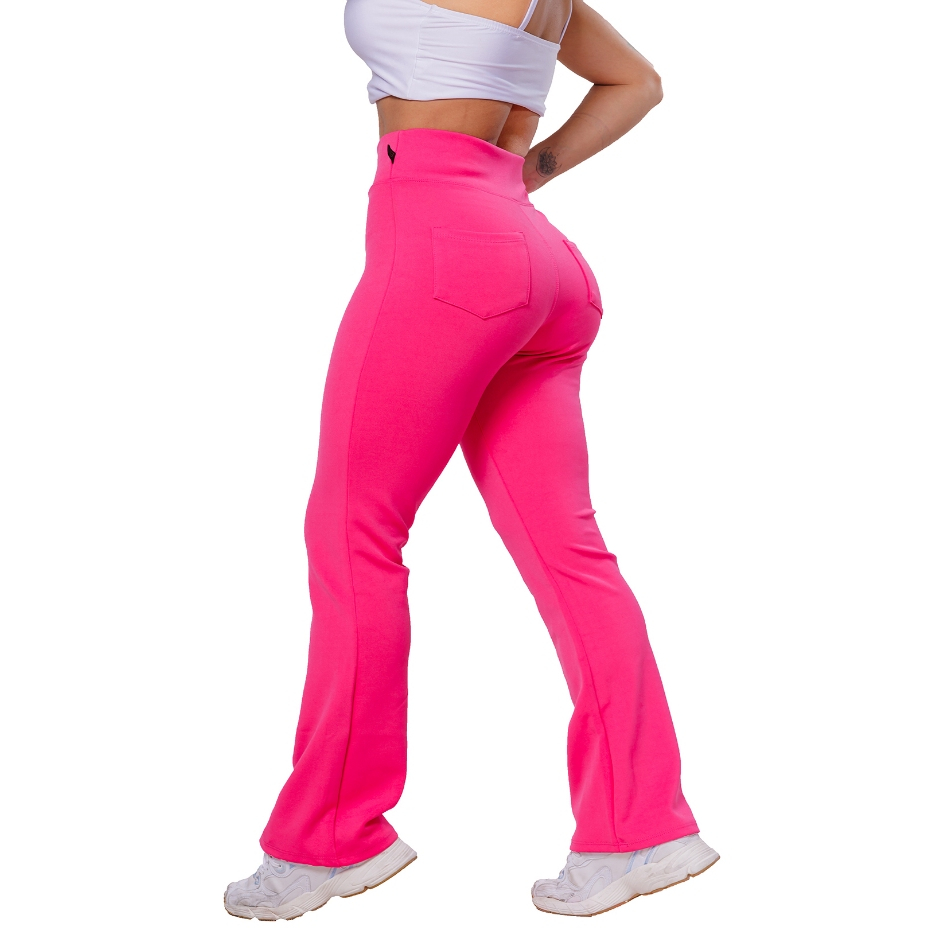 Calça Flare Bailarina Com Bolso Neoprene Feminino Cintura Alta