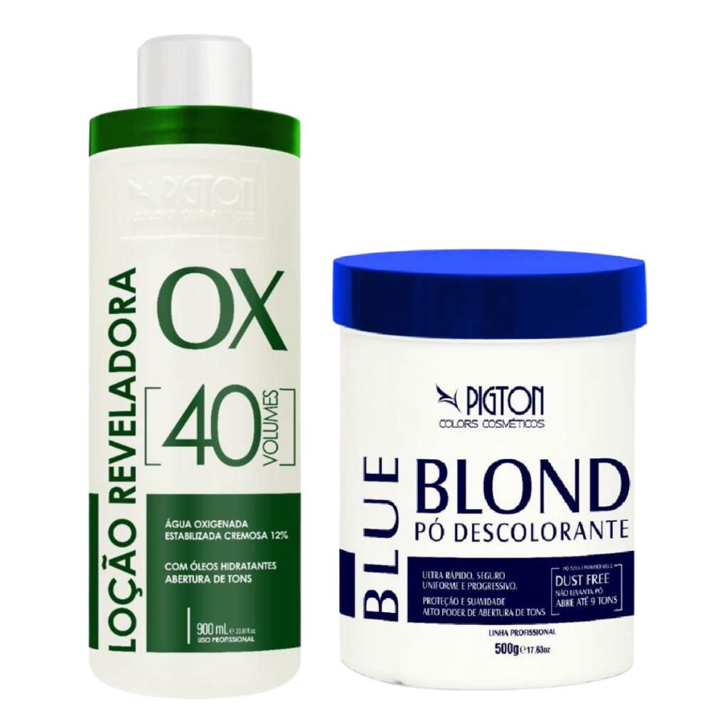 Pó Descolorante Azul Premium Dust Free+ Ox 40 Volumes Pigton