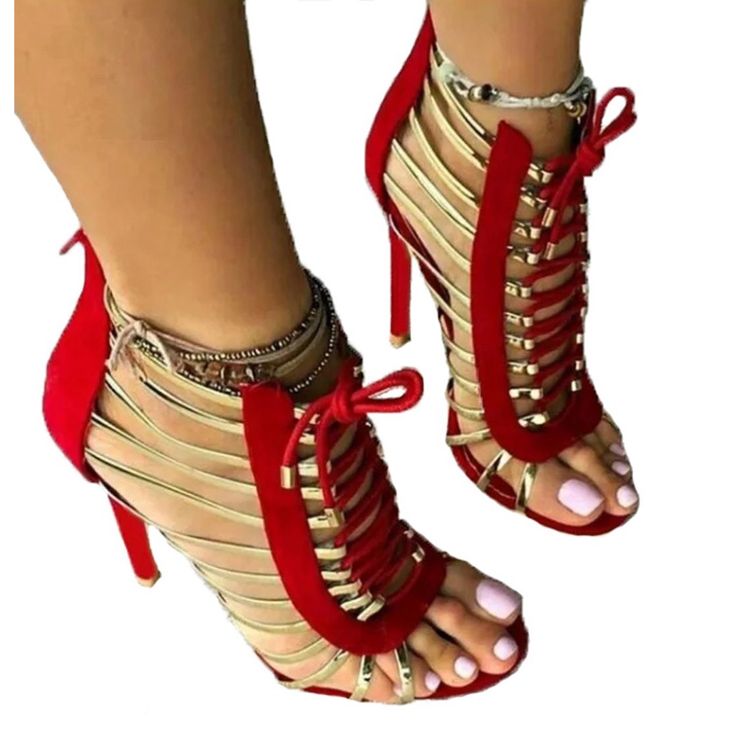 Sandália Gladiadora Salto Alto Vermelha Odalisca 11 Cm