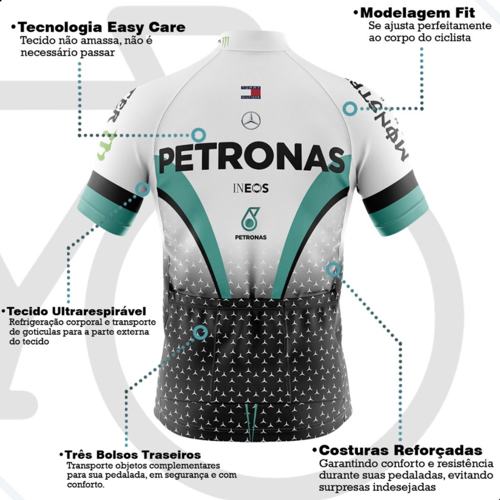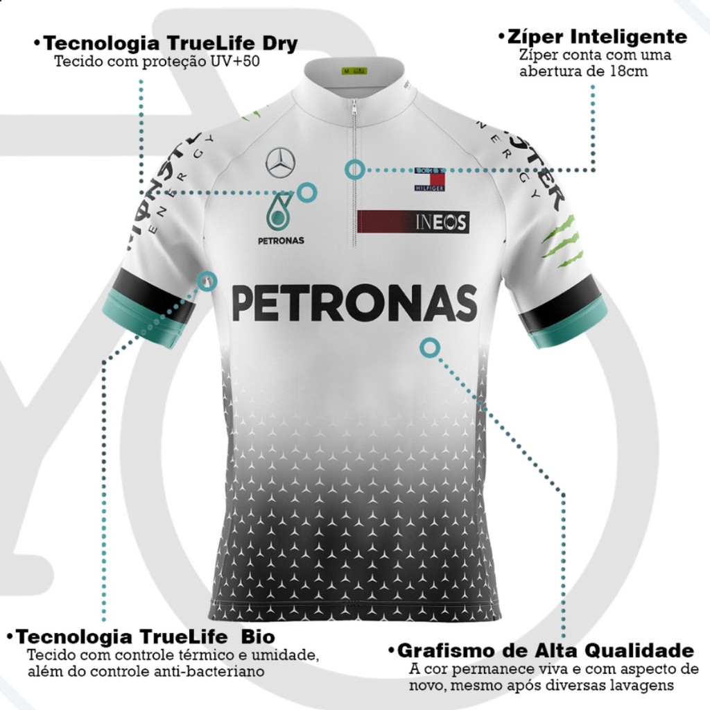 Camiseta Ciclismo Masculina Dryfit Proteção UV Bike MTB Speed Petronas Branca