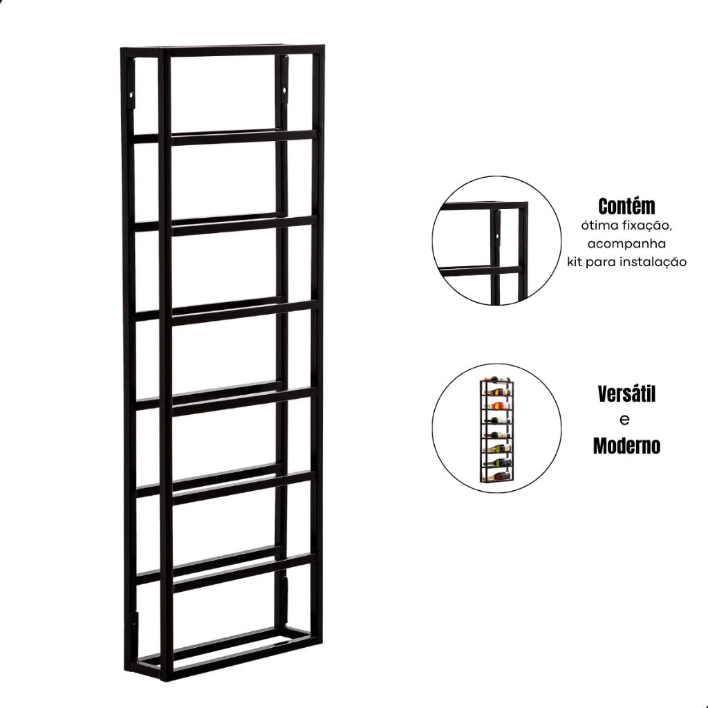Bar Mini Adega 24 Garrafas De Parede Suspensa Estilo Industrial Barzinho Prateleira Para Bebidas