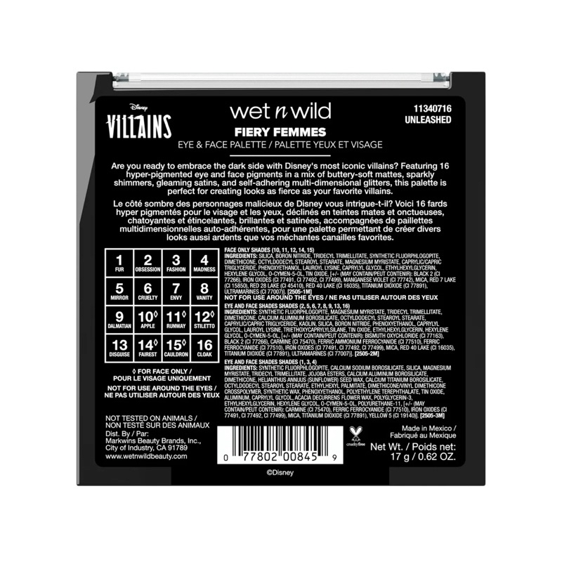 Paleta de Sombras Unleashed Fiery Femmes Eye and Face Palette Wet N Wild x Disney Villains