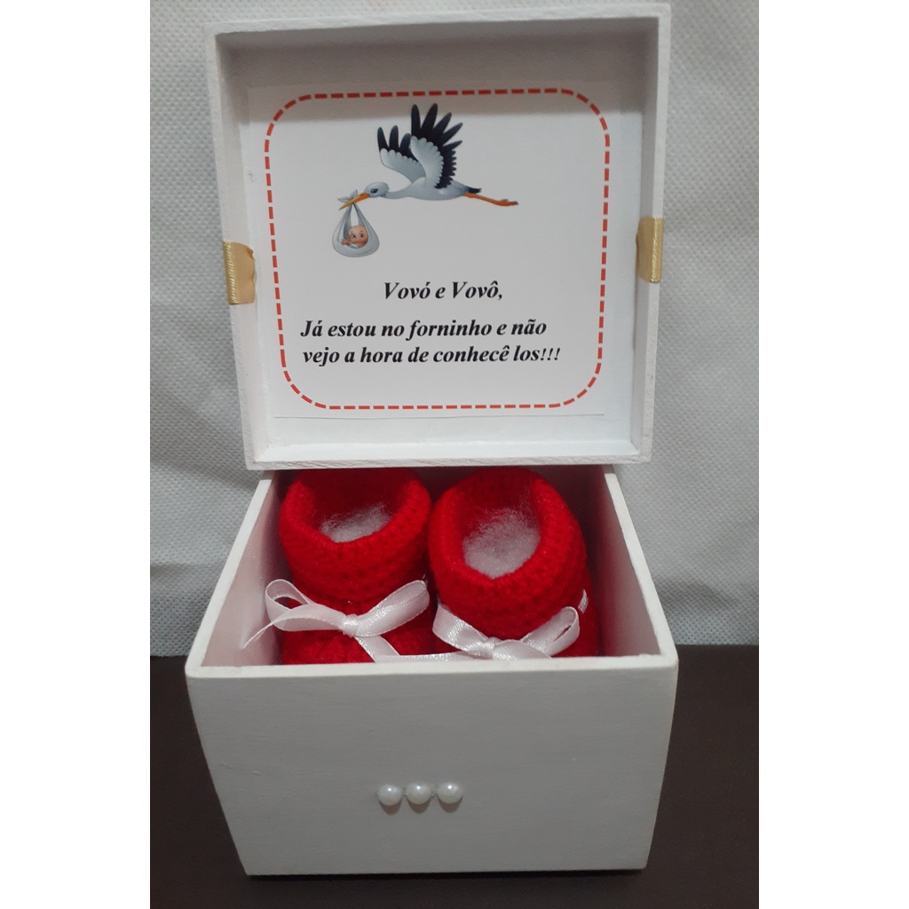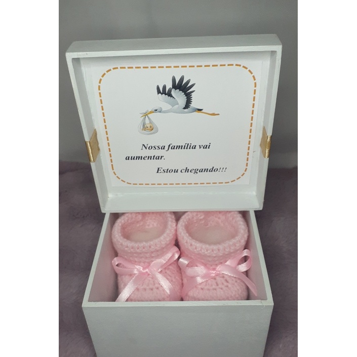 Caixa Revelação de Gravidez Mdf/ Menino Menina **com Sapatinho**