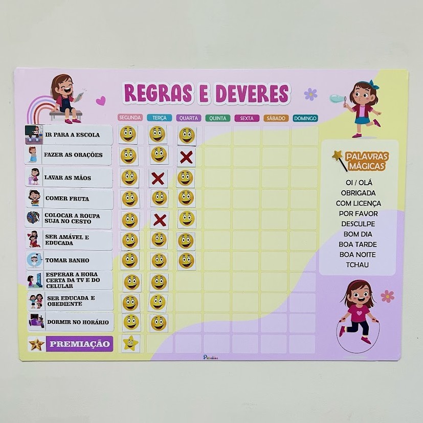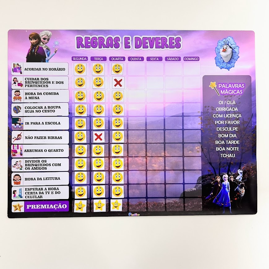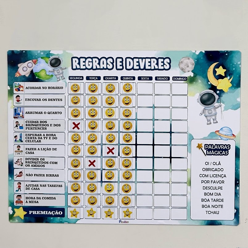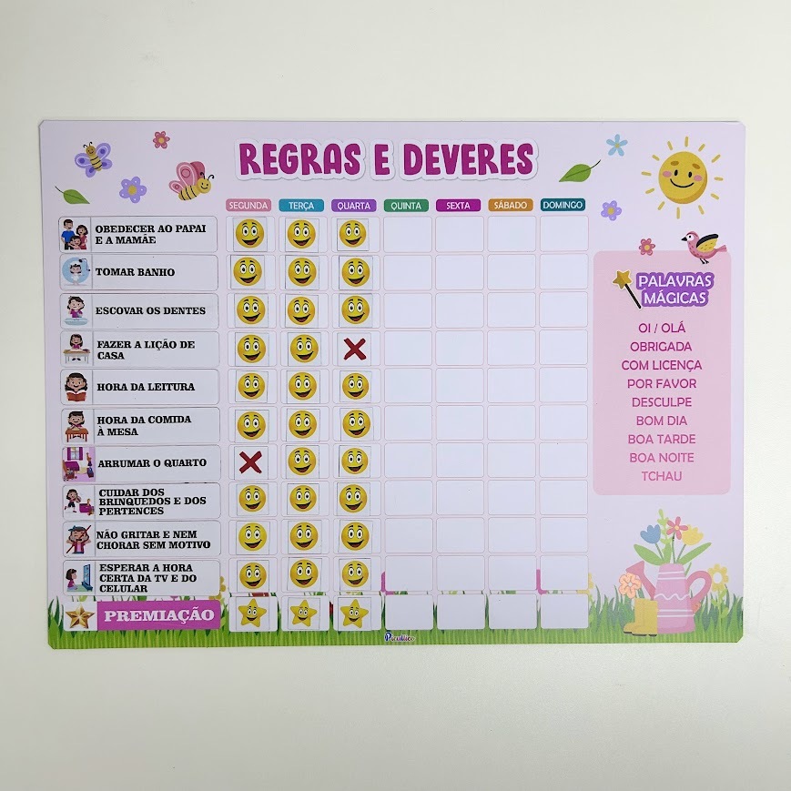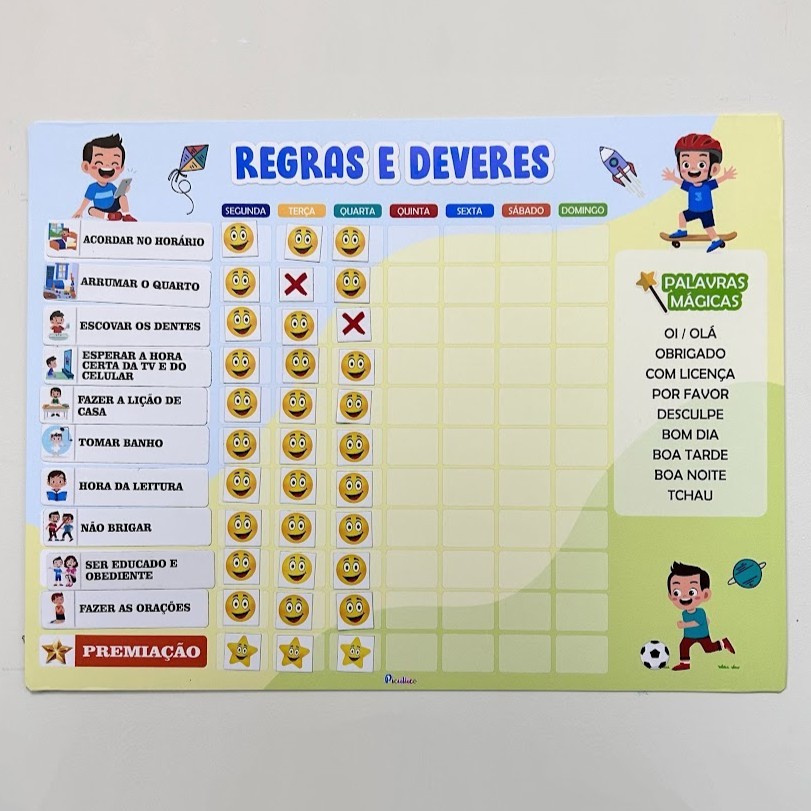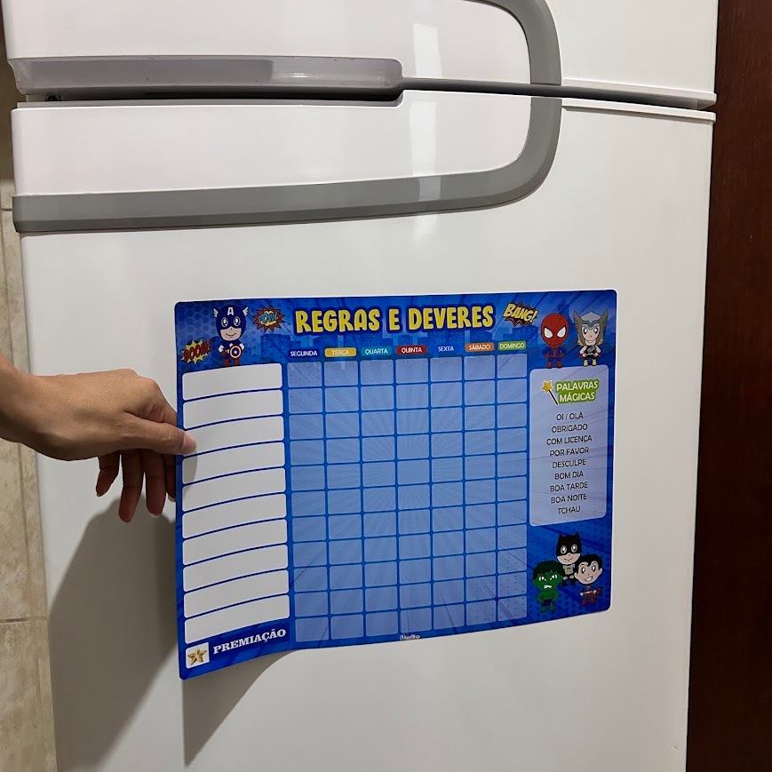 Quadro de Incentivo Infantil ou Tarefas Infantil - Imã de Fixação na Geladeira