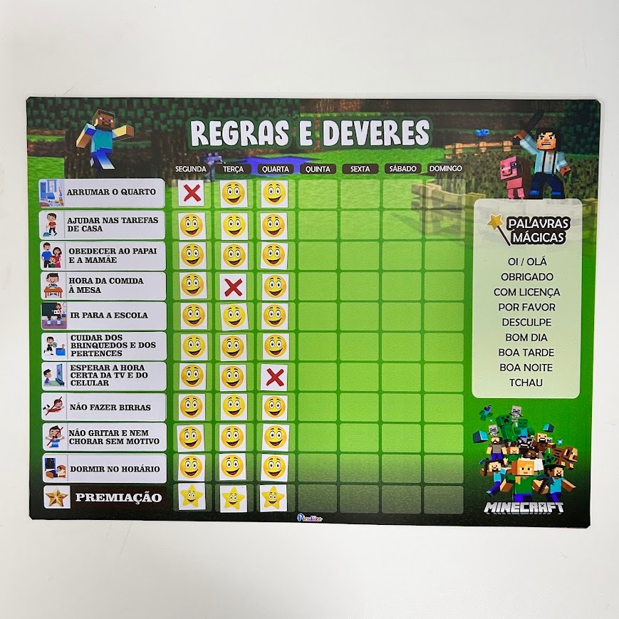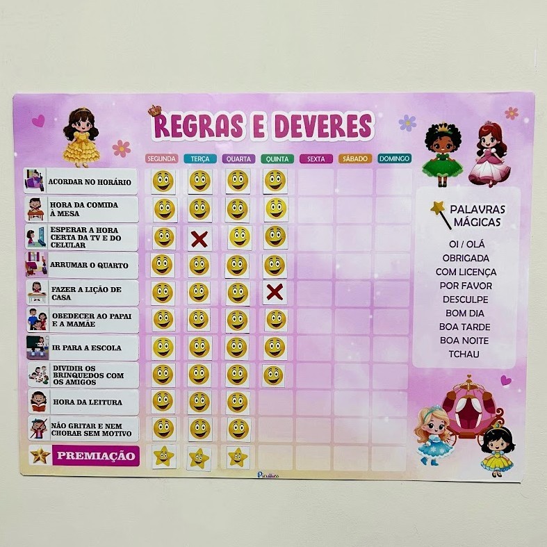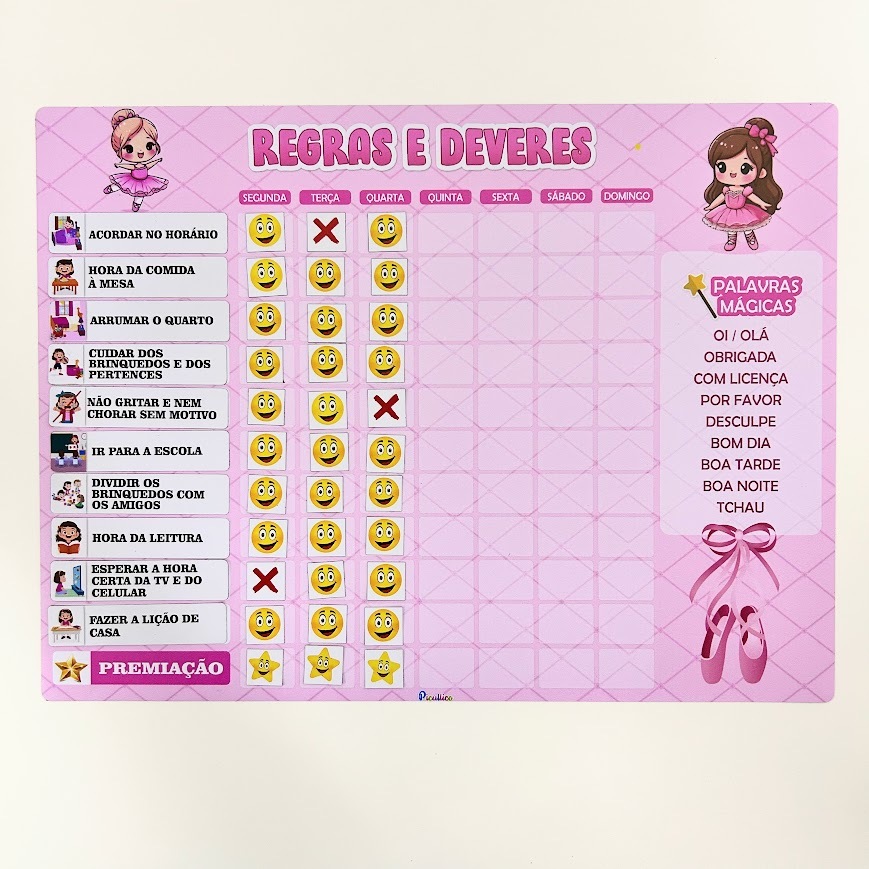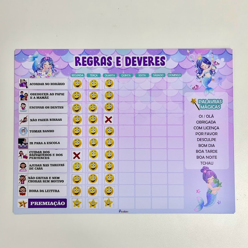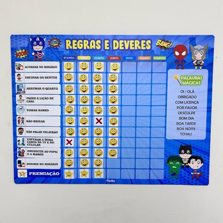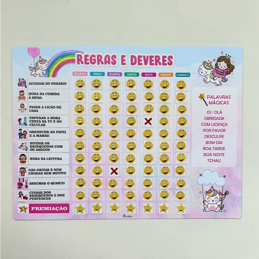 Quadro de Incentivo Infantil ou Tarefas Infantil - Imã de Fixação na Geladeira