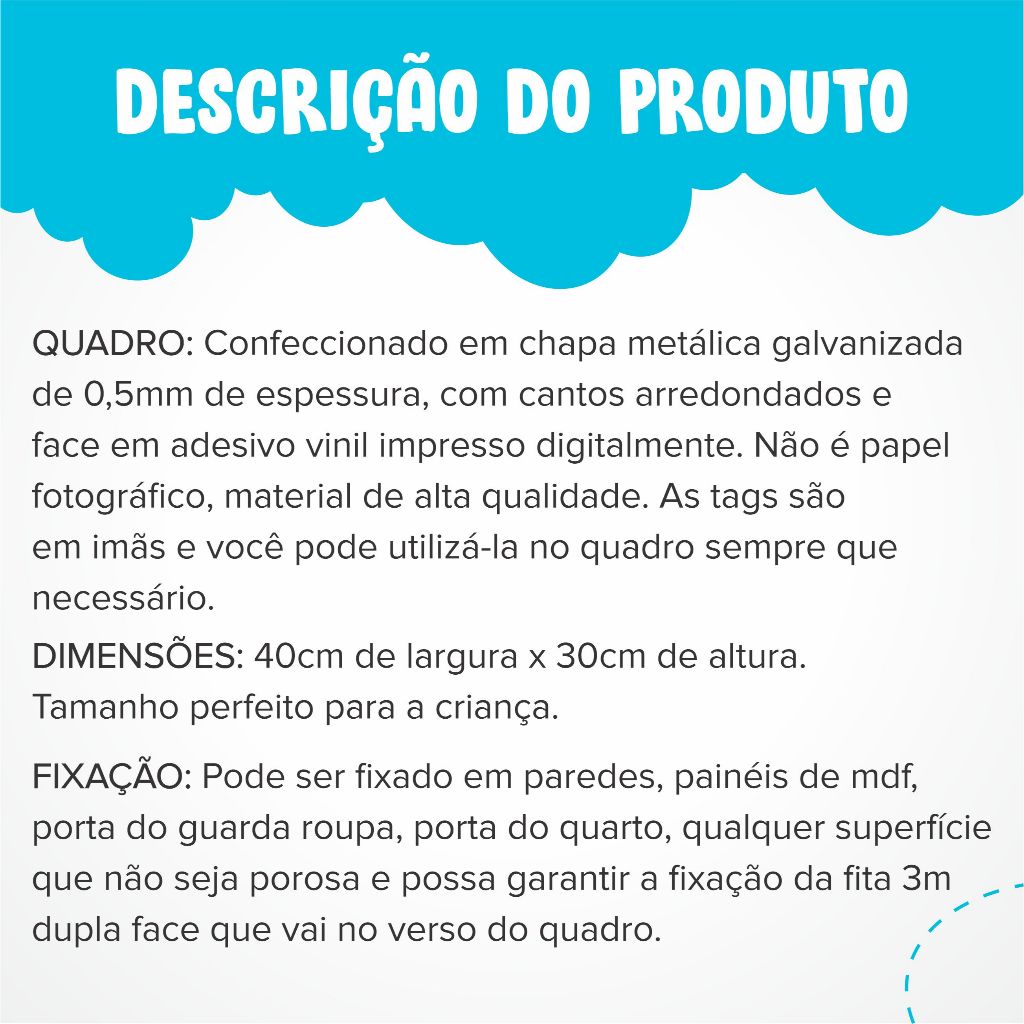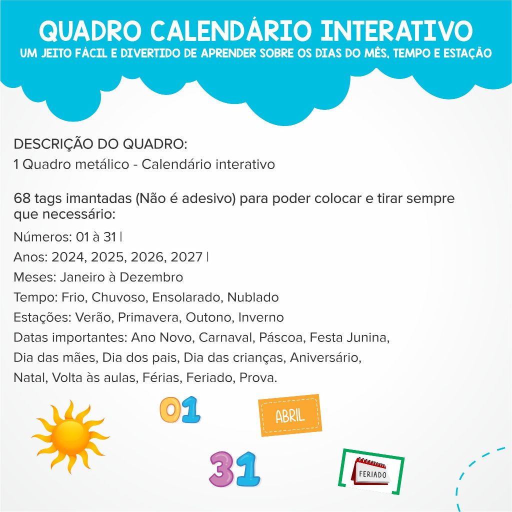 Quadro Calendário Infantil Educativo Interativo da Picullico