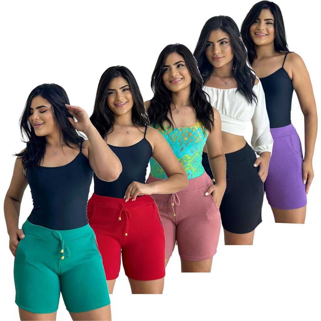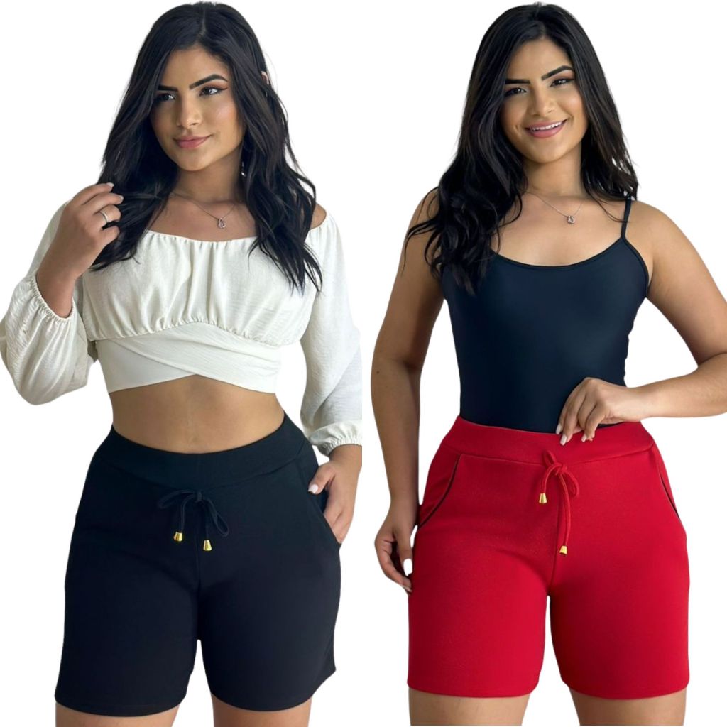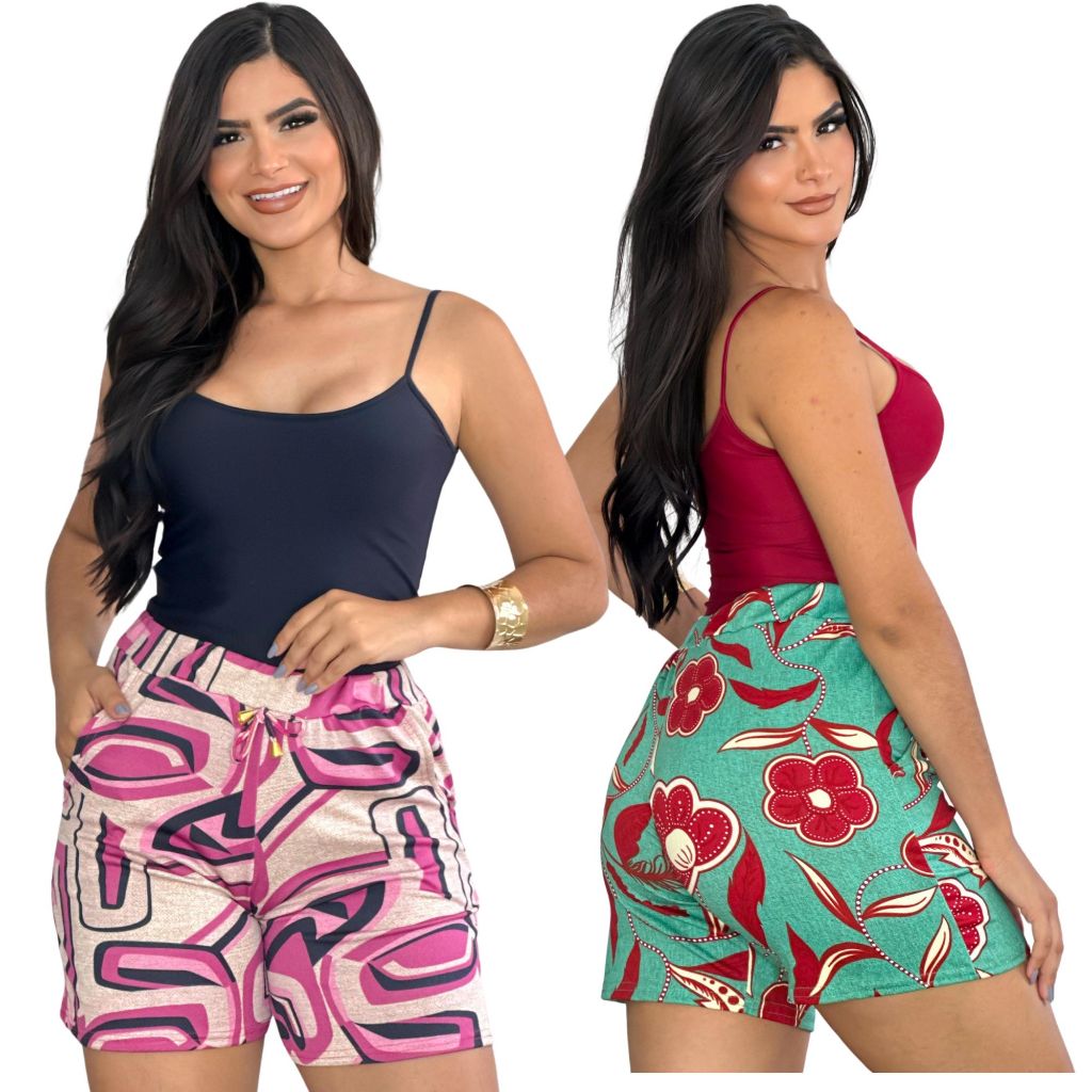 Kit 2 shorts feminino malha crepe bermuda algodão variadas estampadas elastano