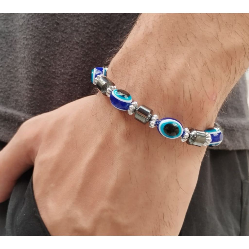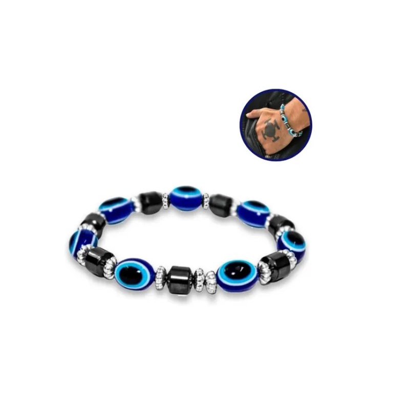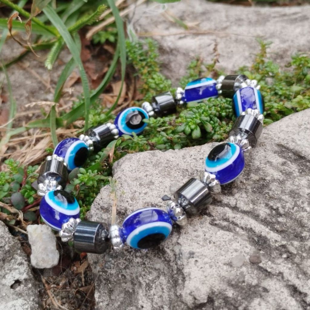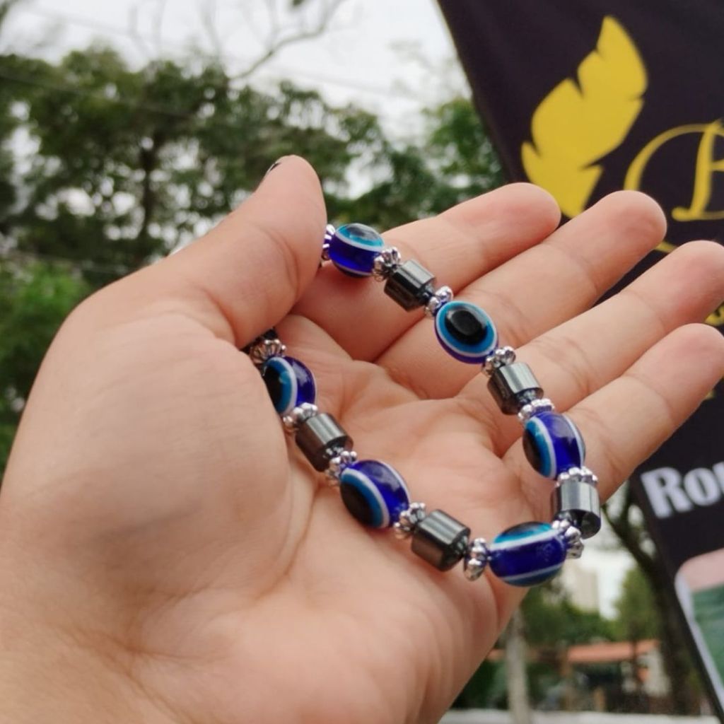 Pulseira Olho Grego Azul Pedra Natural Inveja Mal Olhado Uni