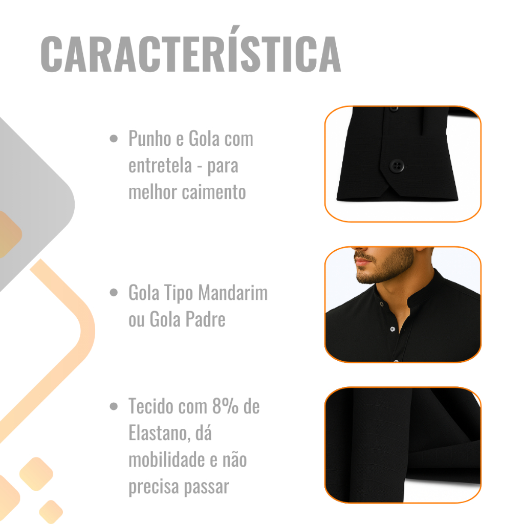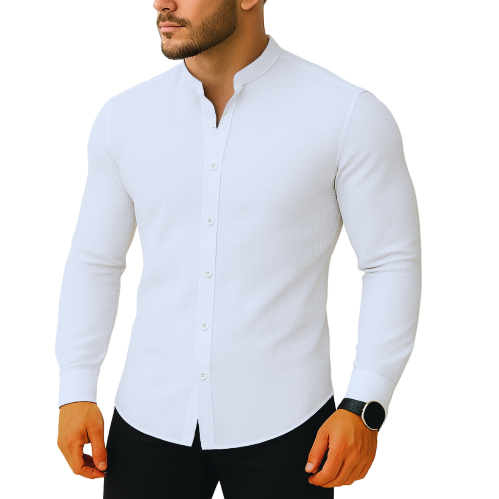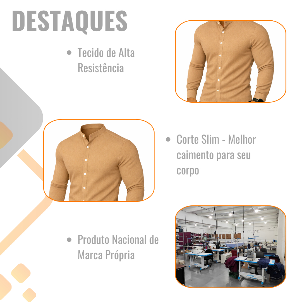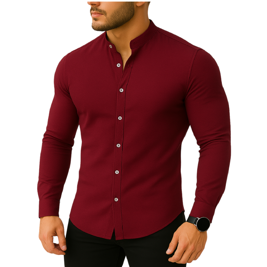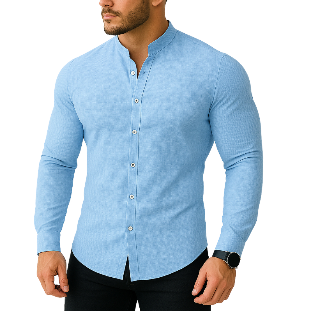 Camisa Slim Blusa Social Masculina Manga Longa Gola Mandarim