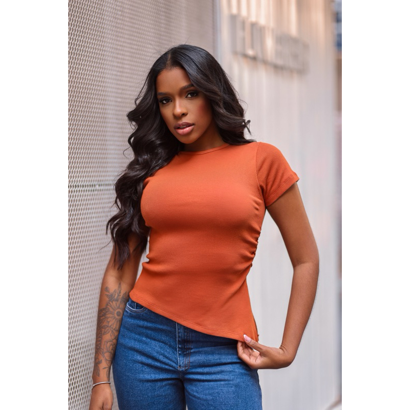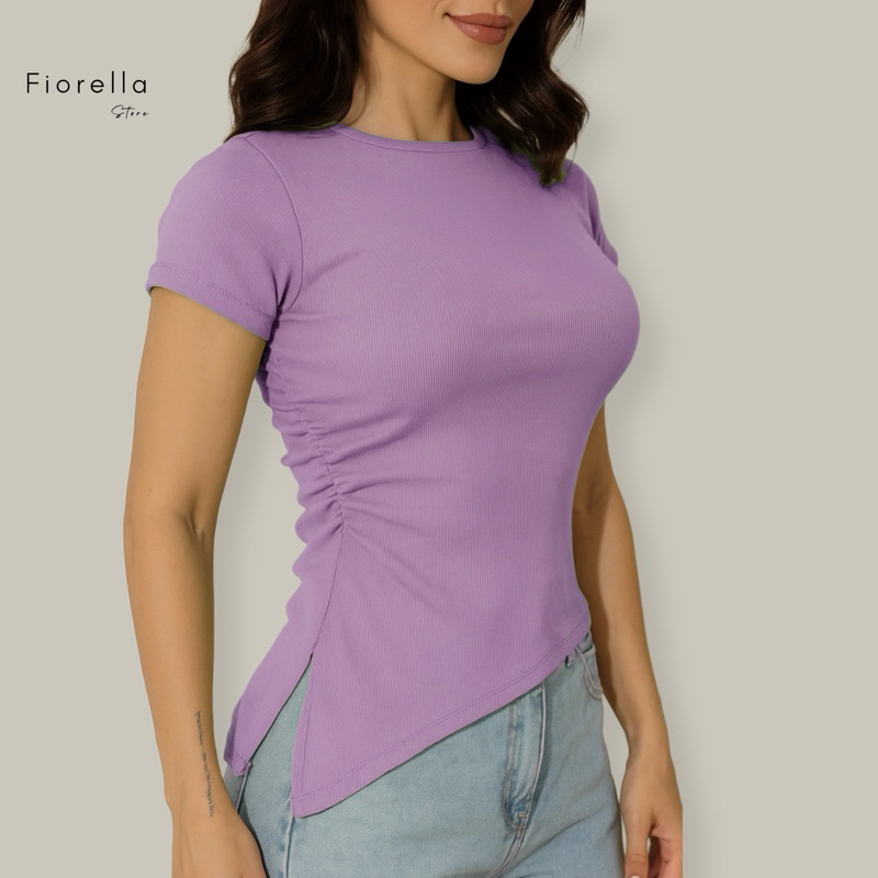 Blusa Feminina Blusinha assimétrica Drapeada com manga Casual trabalho