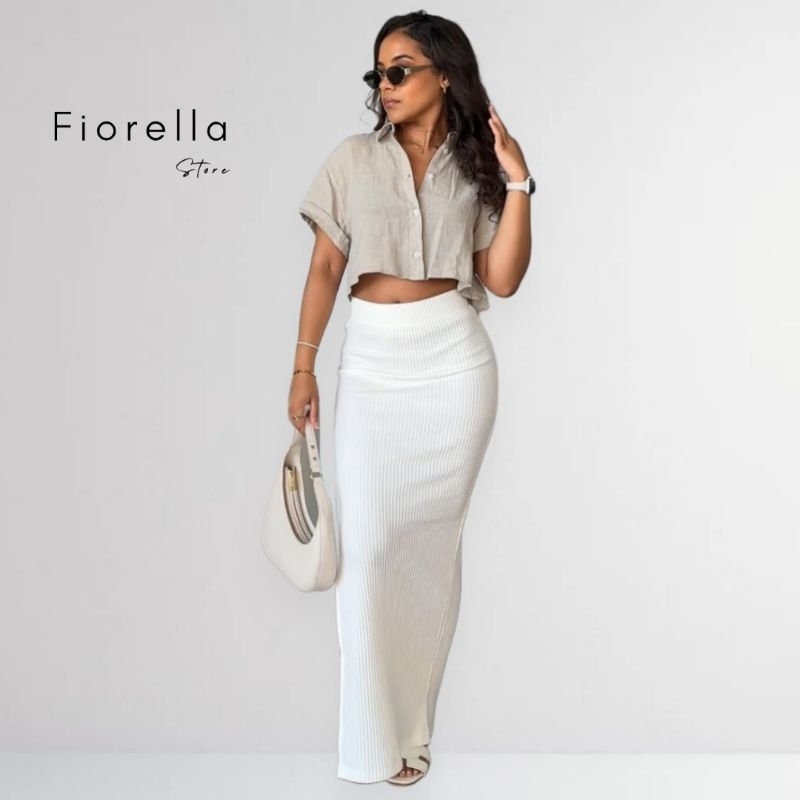 Saia maxi feminina canelada Algodão e Elastano Midsize Moda Gringa do P ao GG