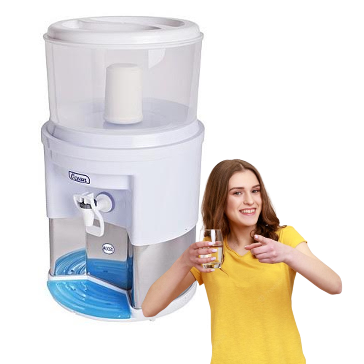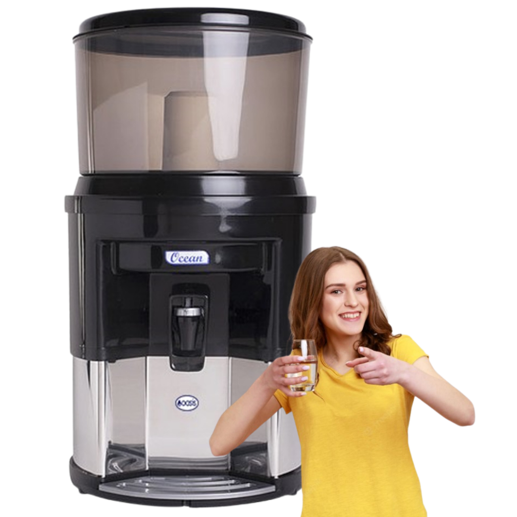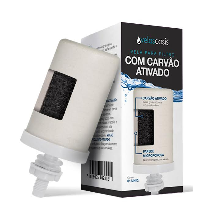 Filtro De Água 7 Litros Base Inox com 1 Vela Carvão Ativado mas uma Boia Dosadora - Branco e Preto