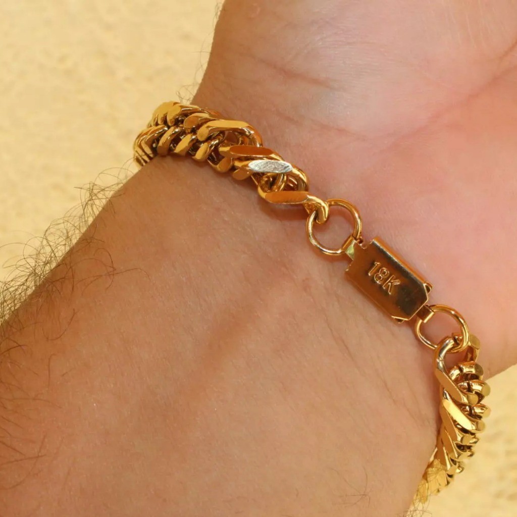 Pulseira Masculina Elos 10mm Aço Inox Banhado Dourado P-18