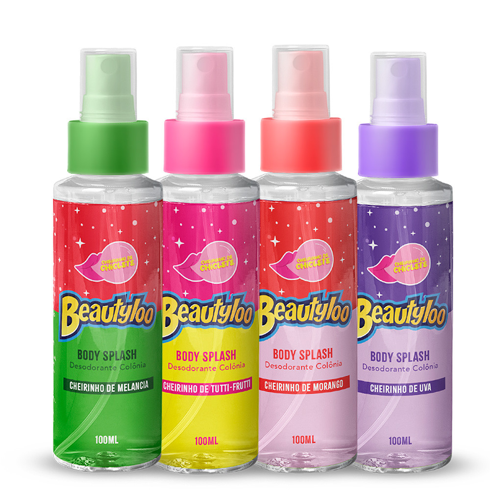 Kit 4 Body Splash Vegano Cheirinho de Chiclete para festa das cores Beautyloo Face Beautiful 100ml