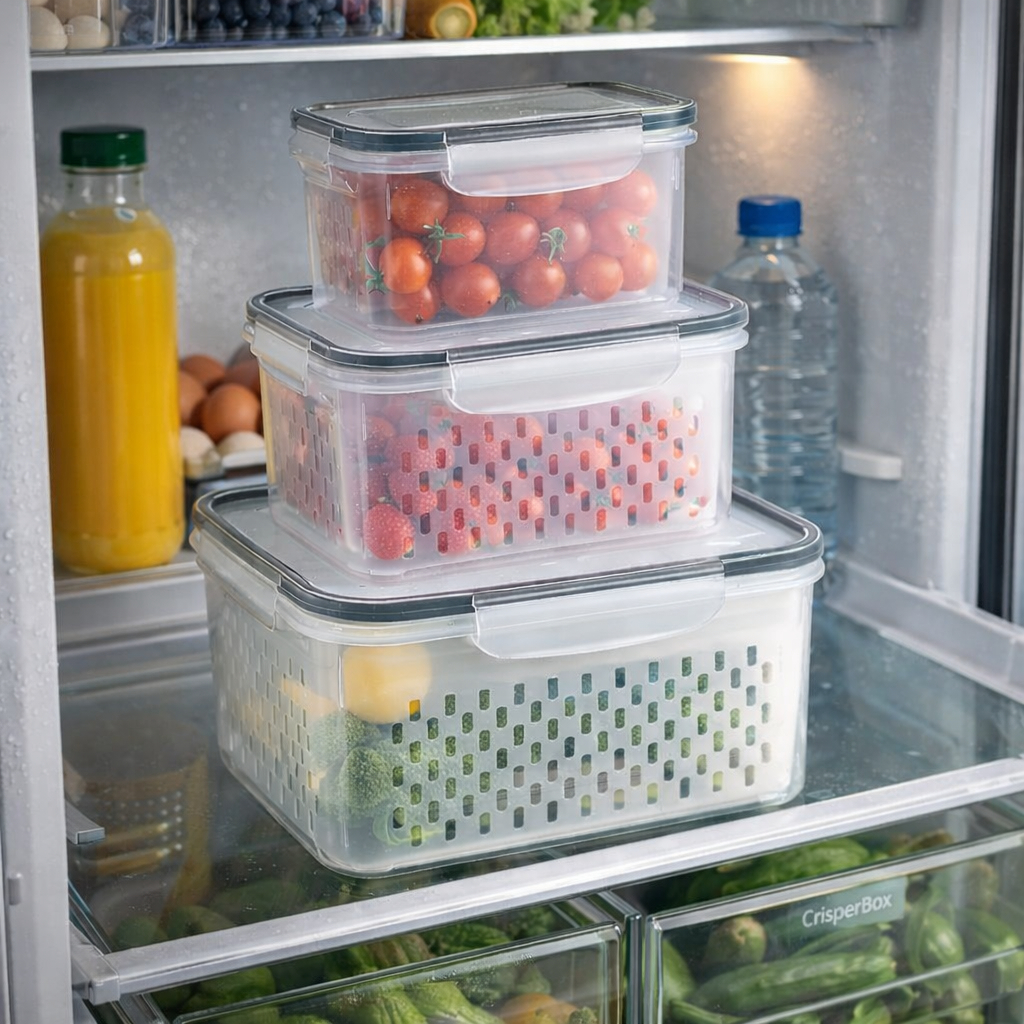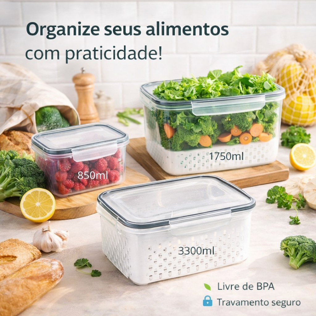 Kit 3 Organizadores Hermeticos de Geladeira e Multiuso