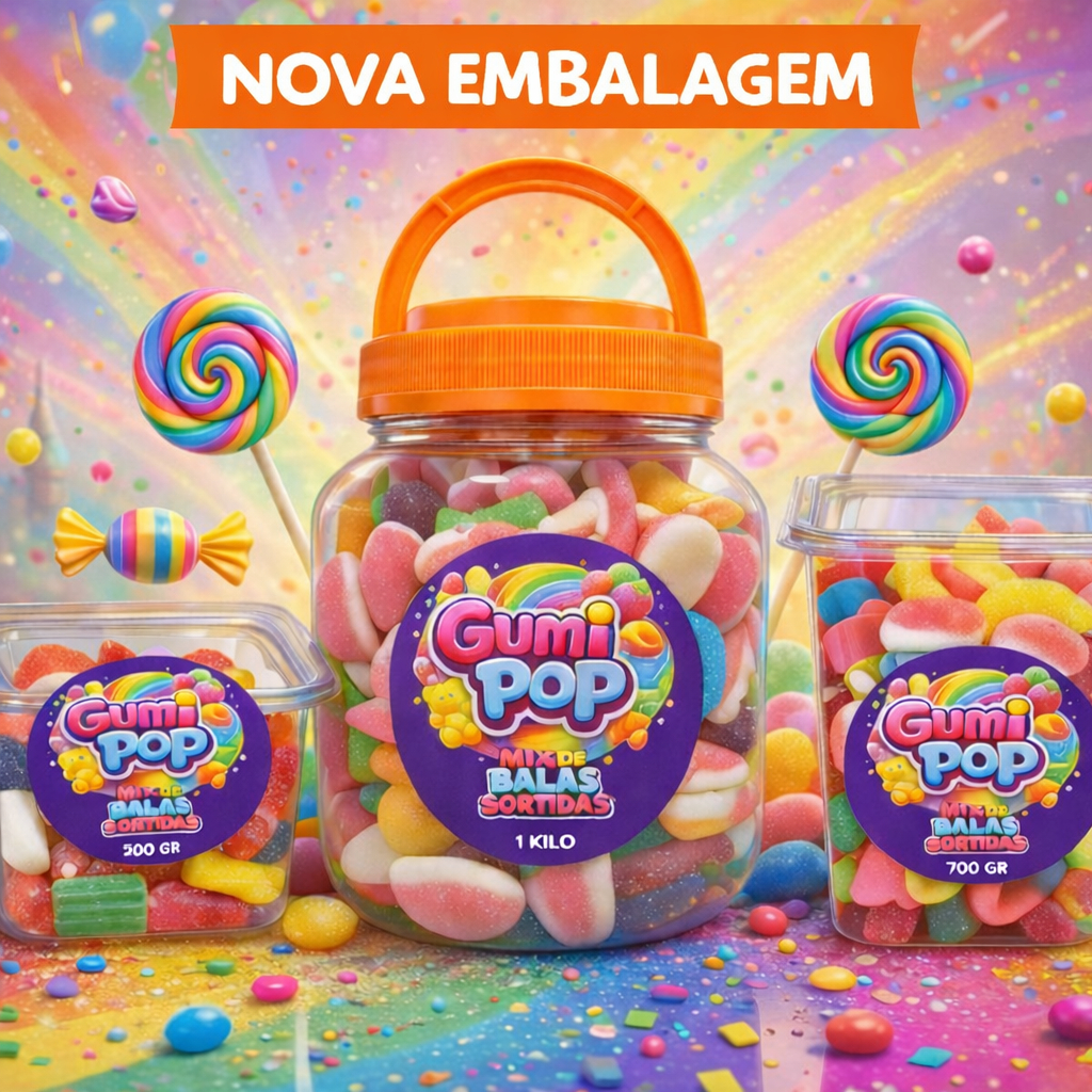 GumiPop Mix Bala Gelatina a Granel Sabores Sortidos Guloseimas Doces