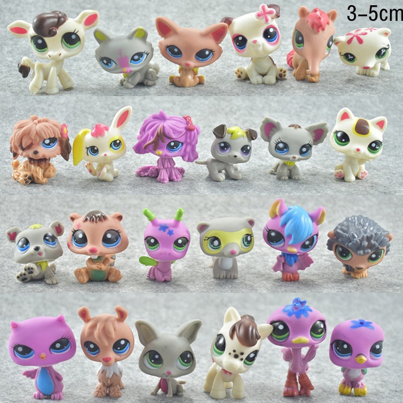 24 Pçs/Set 3-5cm LPS Littlest Pet Shop Stand Pequeno Cabelo Curto Gato Antigo Original Cão Dachshund Pastor Grande Dane