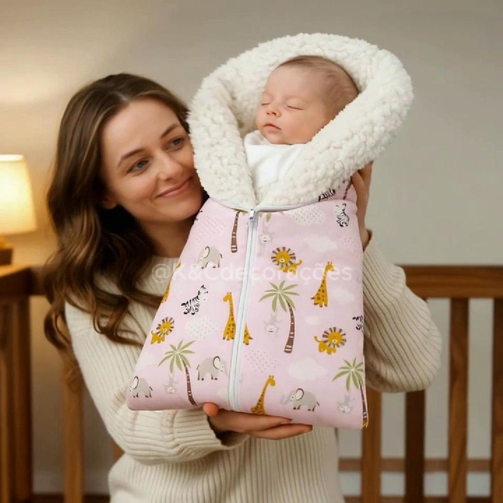 Saco de Bebê Dormir Com Zíper Sherpa Carneirinho e Tricolini Safari e Balão