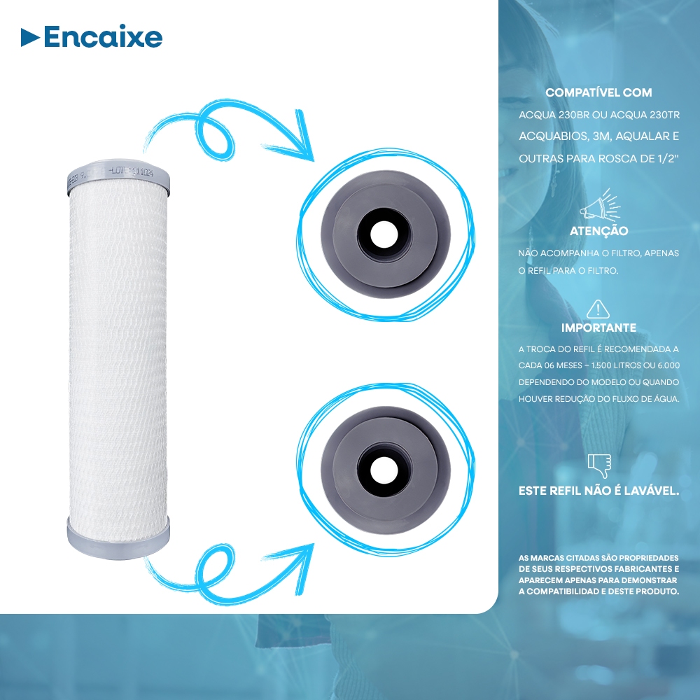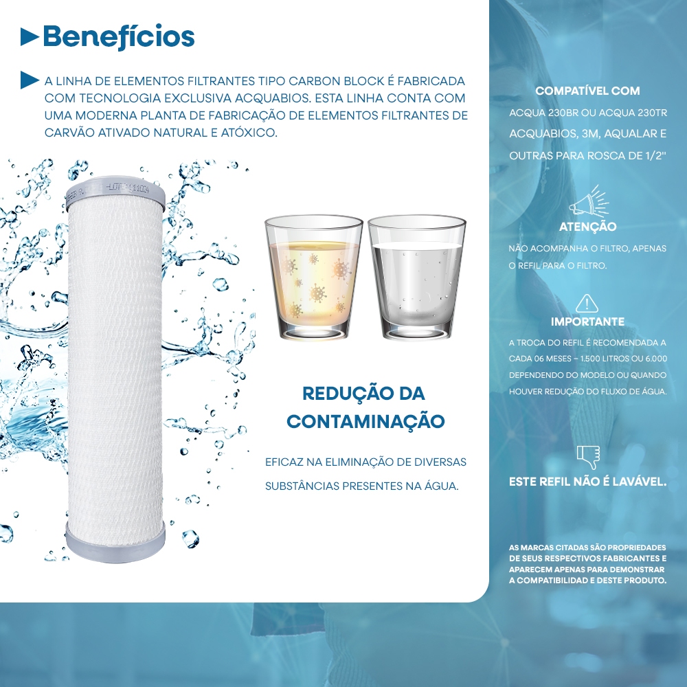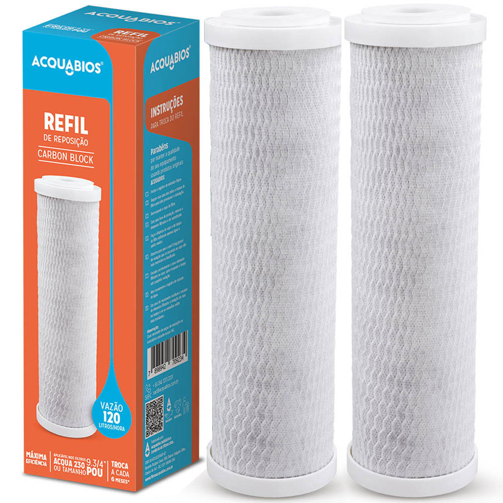 Kit 02 Refil Para Filtro Aqua 230 Carbon Block 9.3/4" POU Acquabios