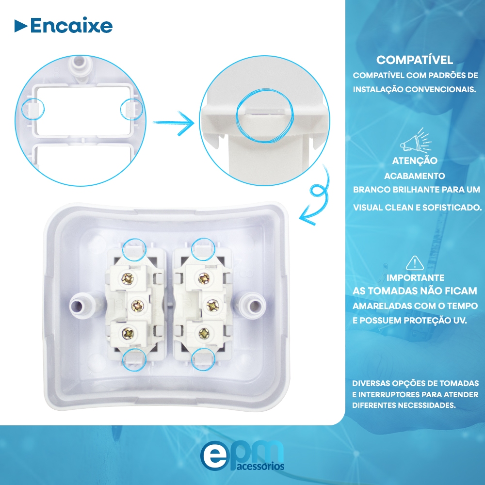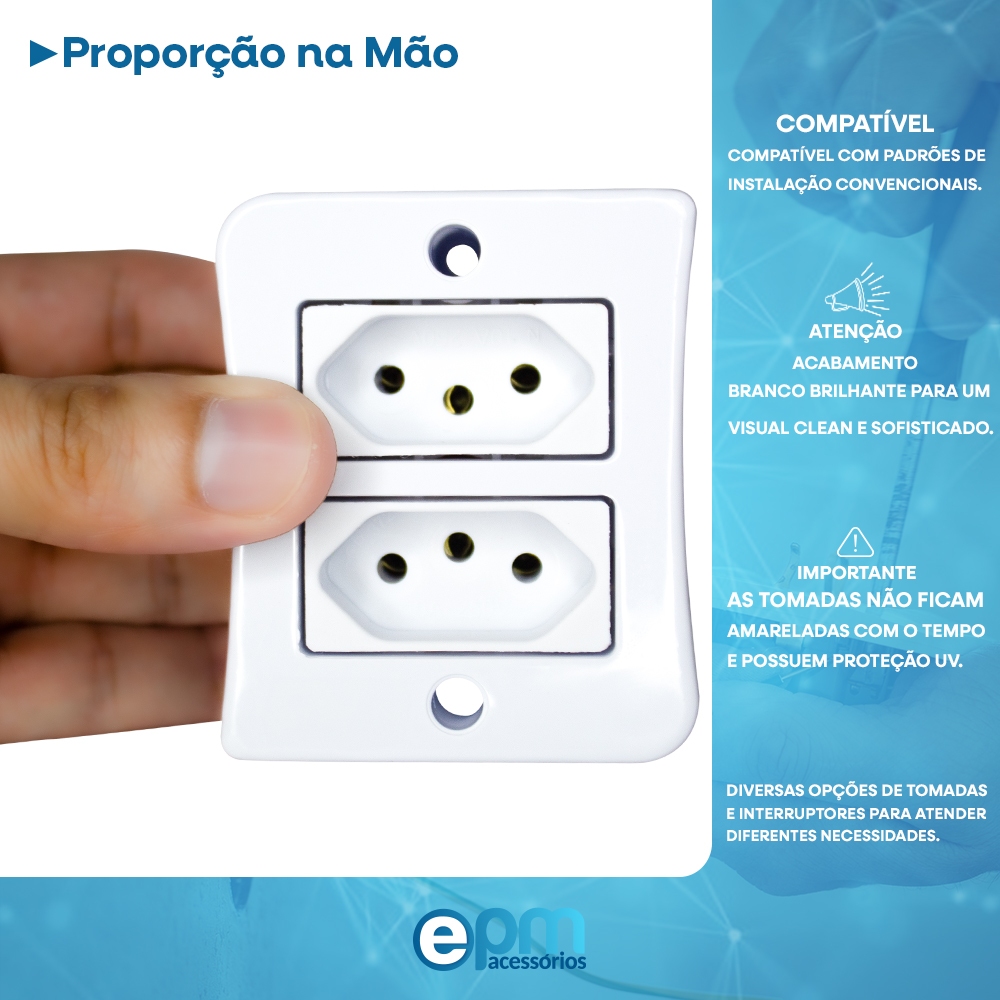Kit 5 Tomada Dupla 2p+t 10A Sobrepor Externo Com Placa Espelho Branco Linha Viena Bivolt 127v e 250v