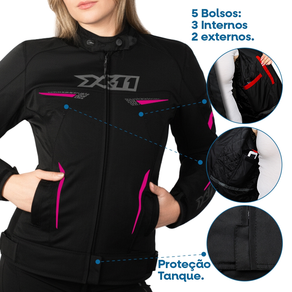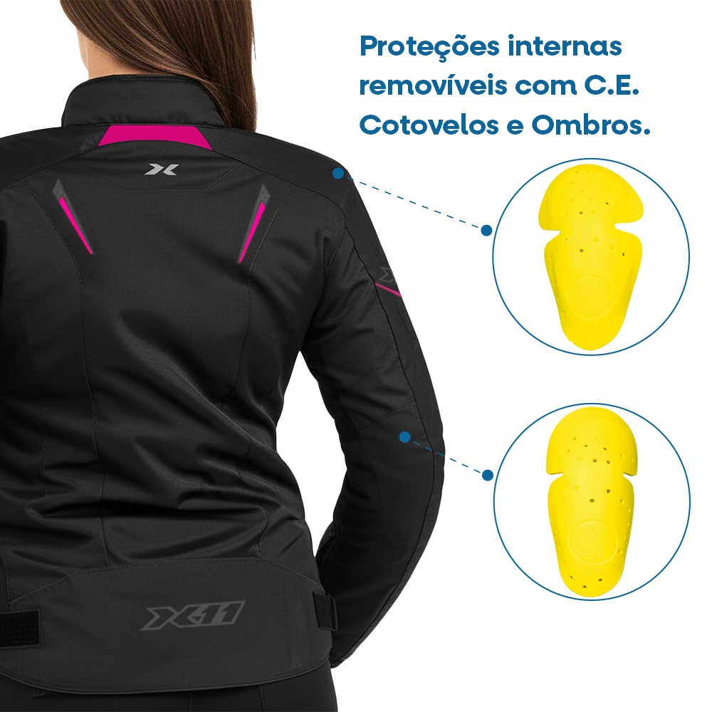 Jaqueta X11 Guard 3 Com Proteção Feminina Motociclista Motoqueiro