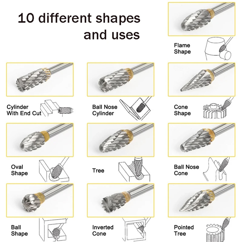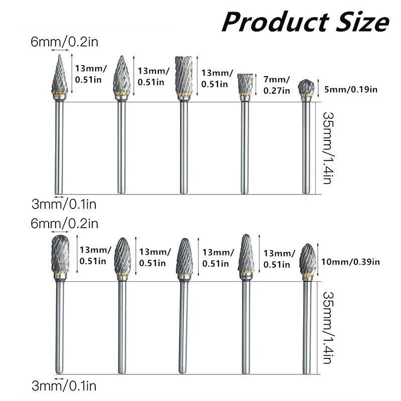 Jogo 10 Fresas Metal Duro Tungstênio Micro Retifica Dremel