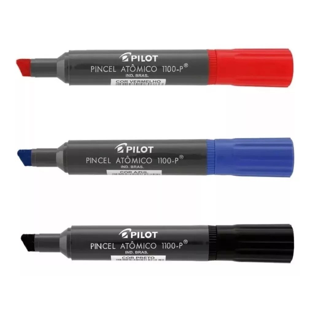 Kit 3 Caneta Pincel Atomico Marcador Canetão Permanente Recarregável Ponta Chanfrada Cores