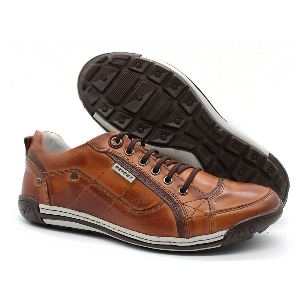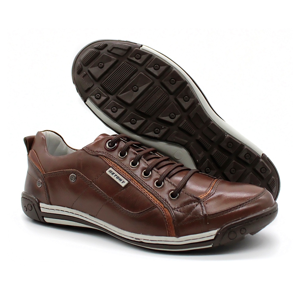 Sapatênis Casual Masculino Cano Baixo Em Couro Legítimo.