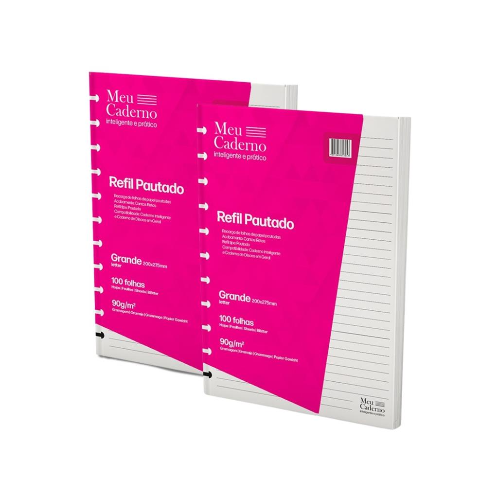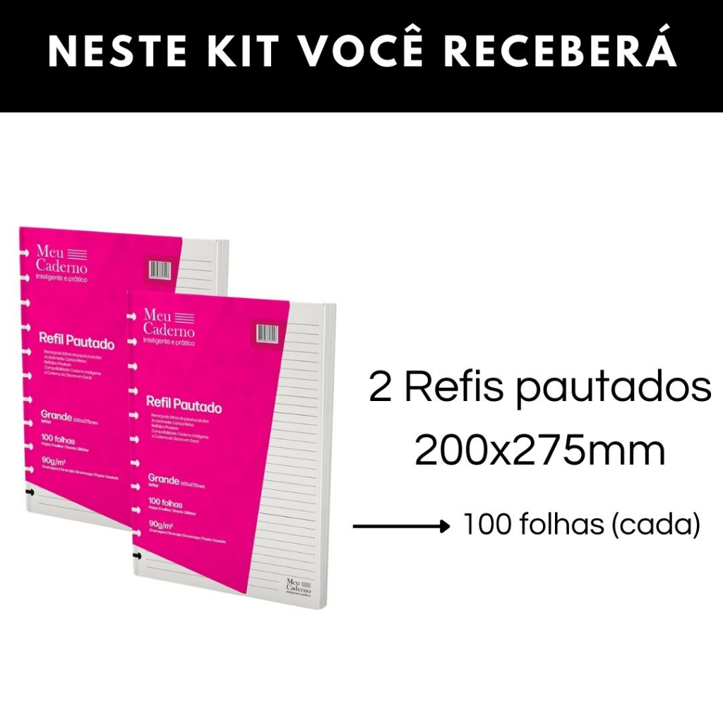 KIT 2 Refil Caderno Inteligente Grande Pautado 90g Compativel 200x275mm Refil Caderno de 11 Discos Furos 200fls