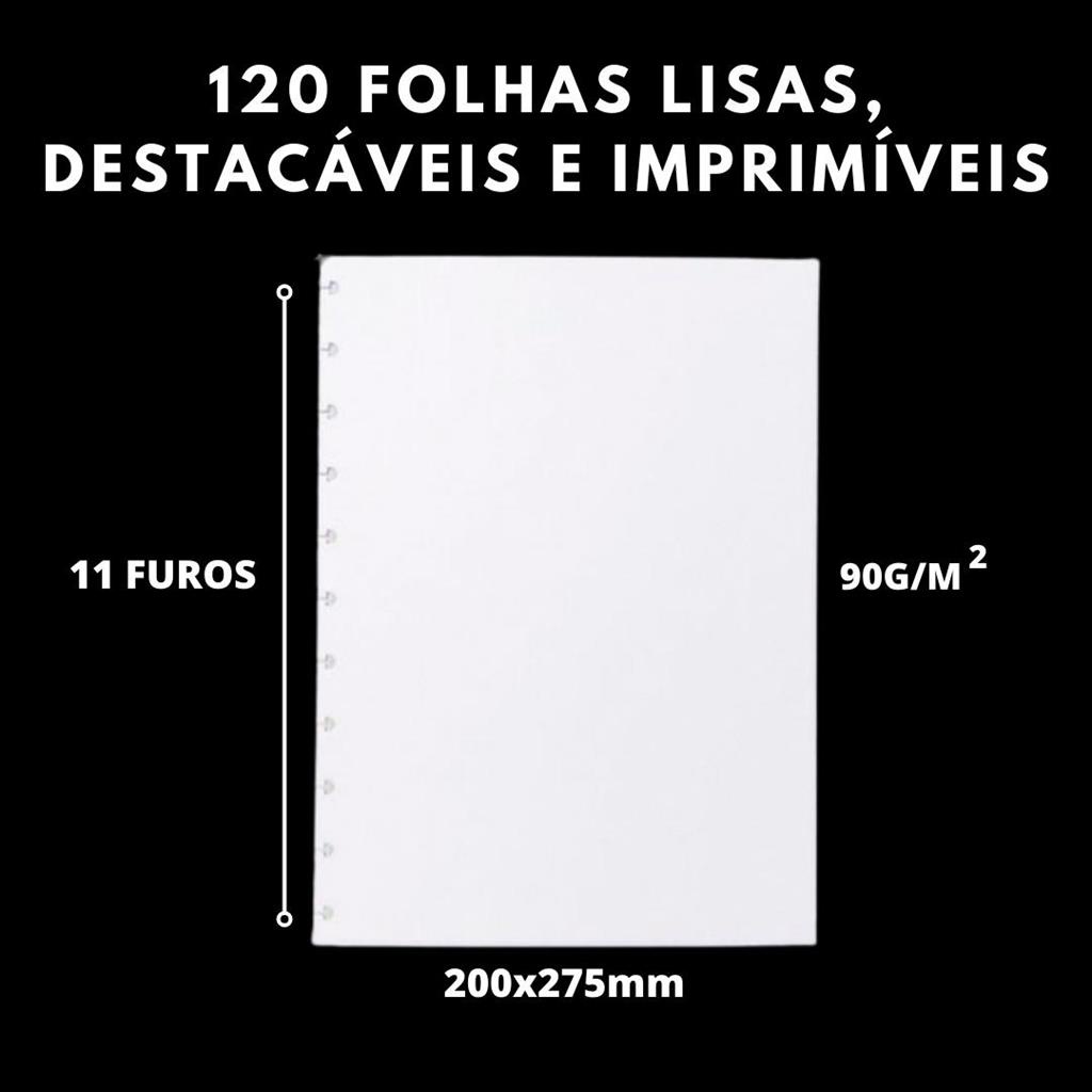 KIT 420 Folhas Refil Compativel Caderno Inteligente Liso e Pautado Refil Caderno de 11 Discos Furos