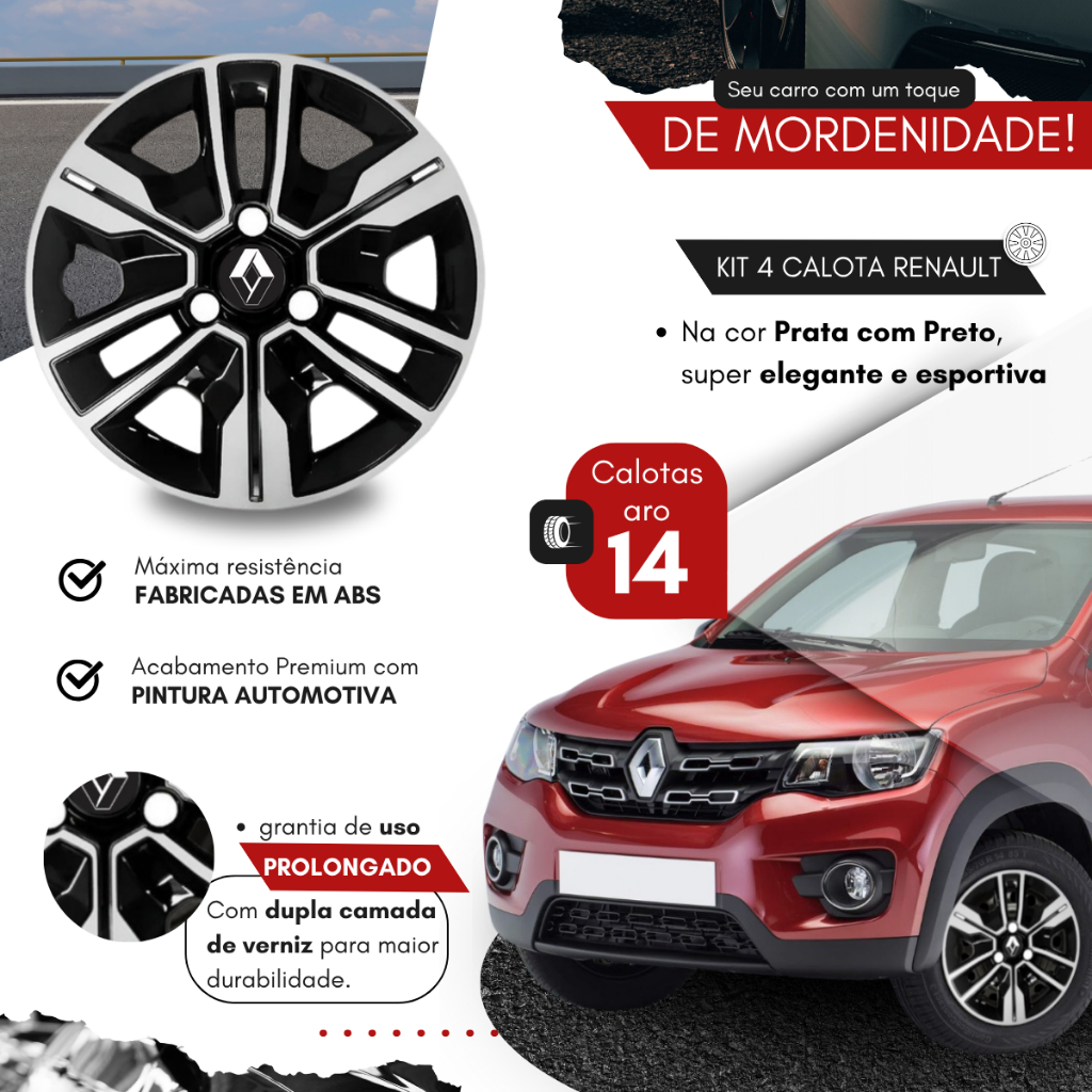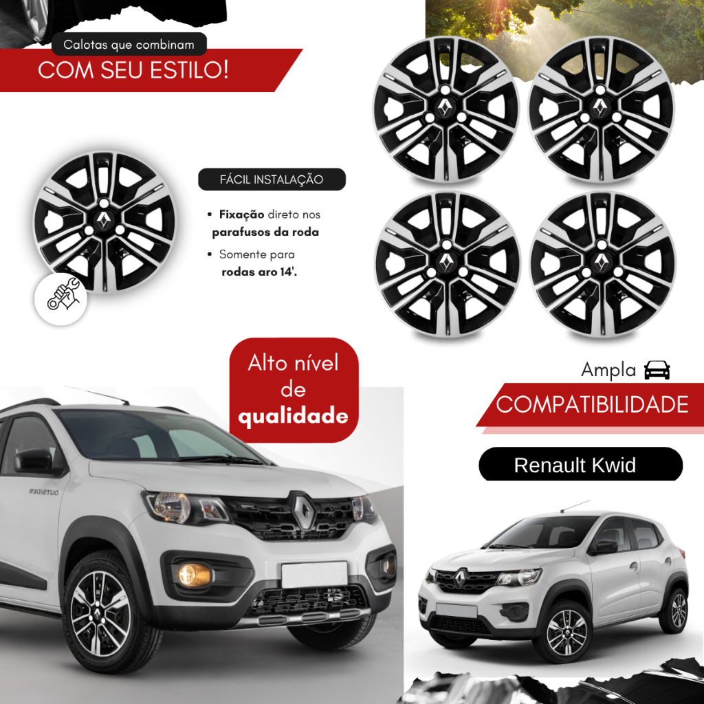 Jogo Calota Roda Aro 14 Kwid Outsider 2018 2019 2020 2022 2023