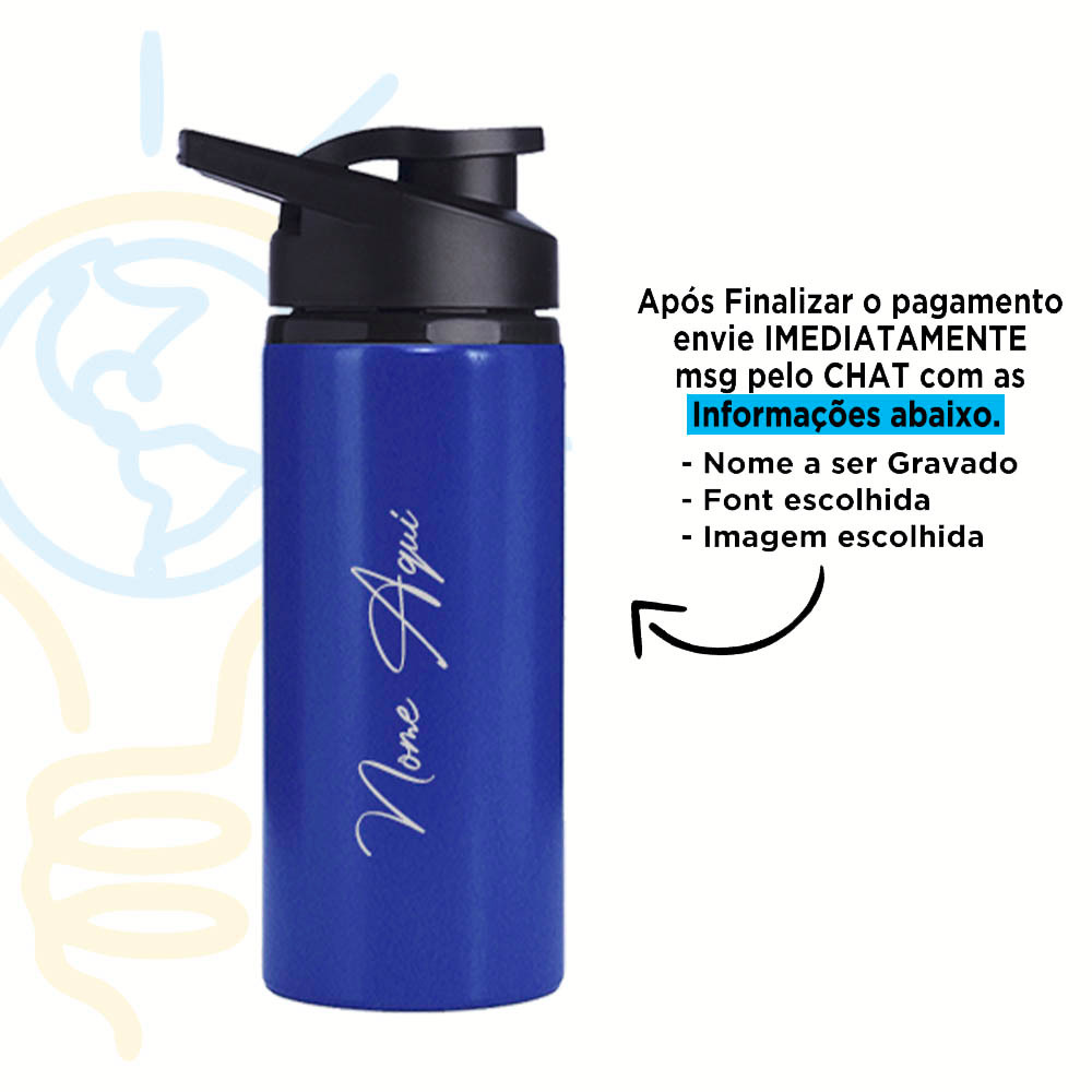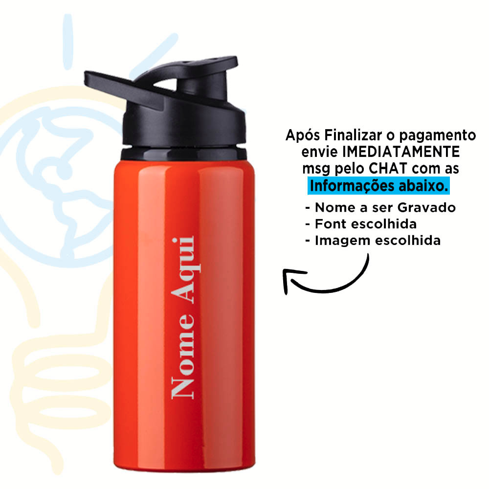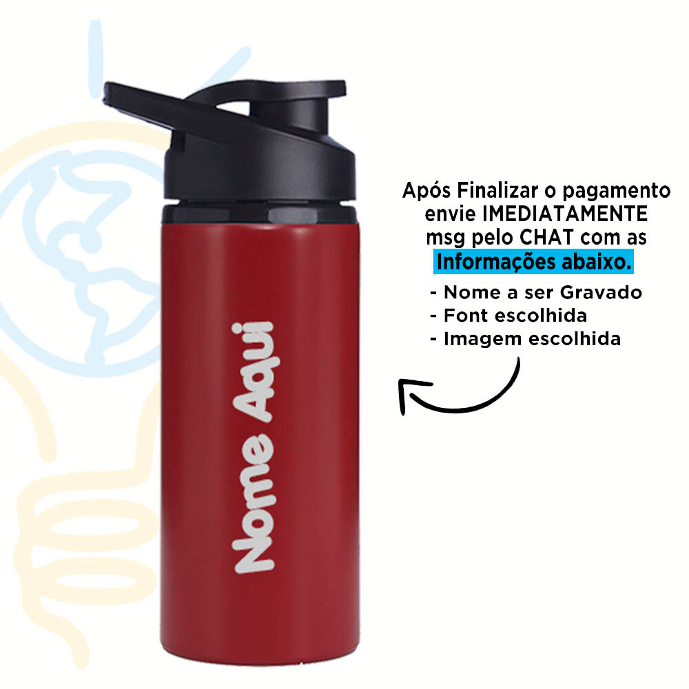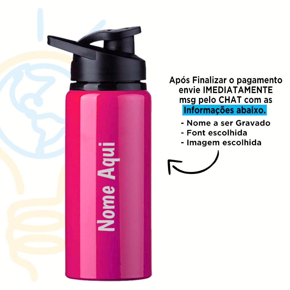 Squeeze Alumínio 600ml Personalizada Com Seu Nome