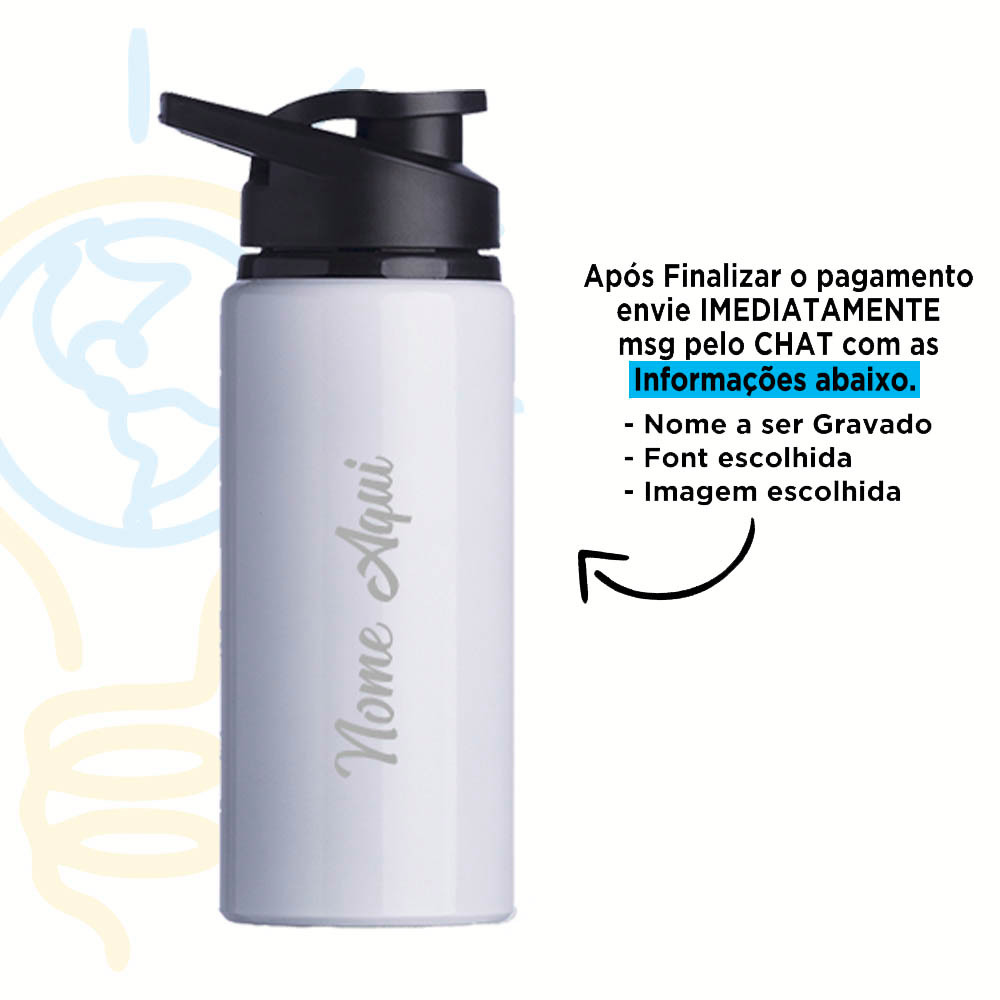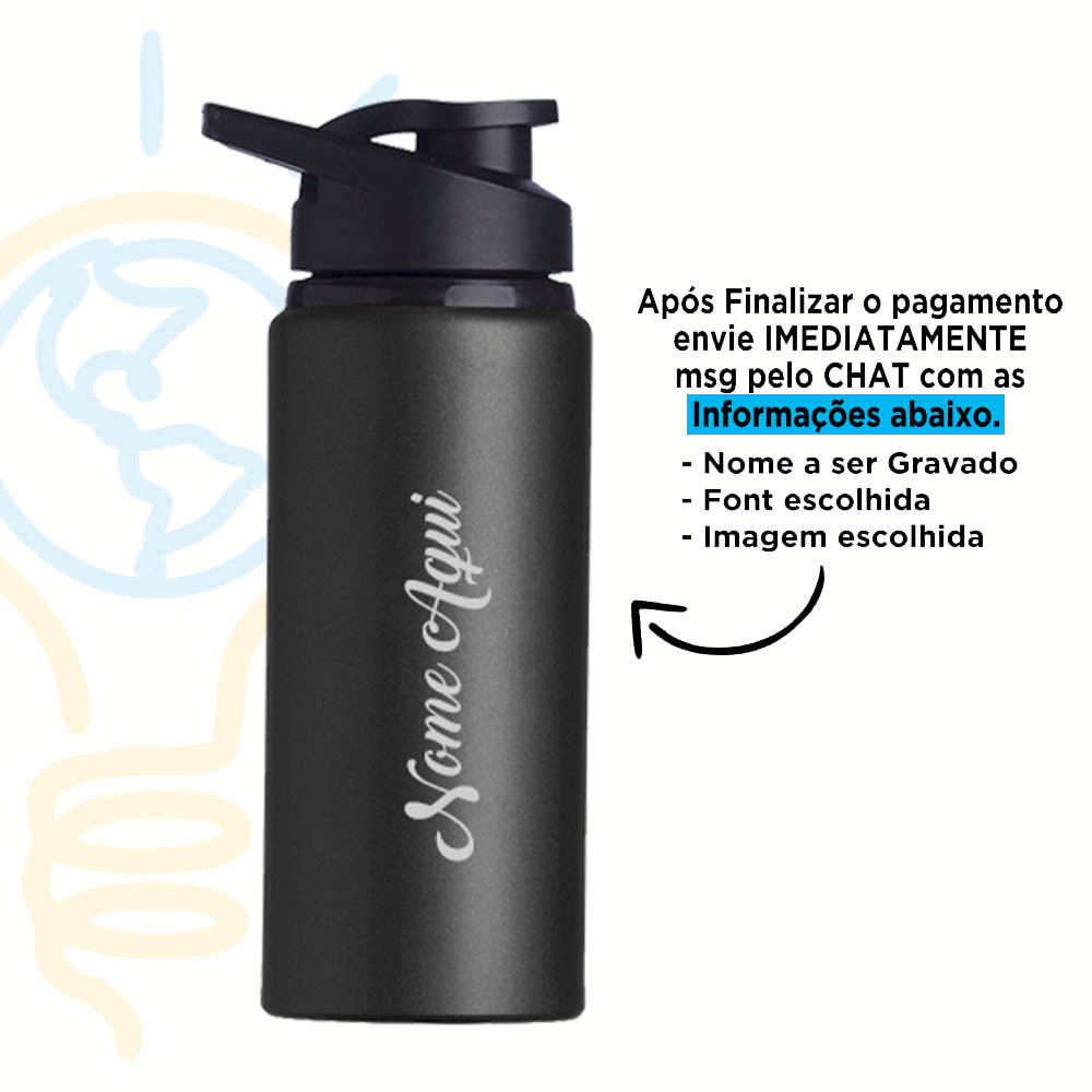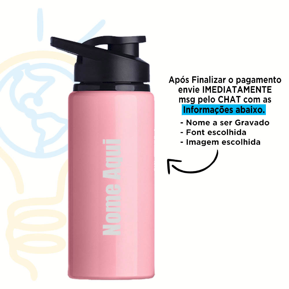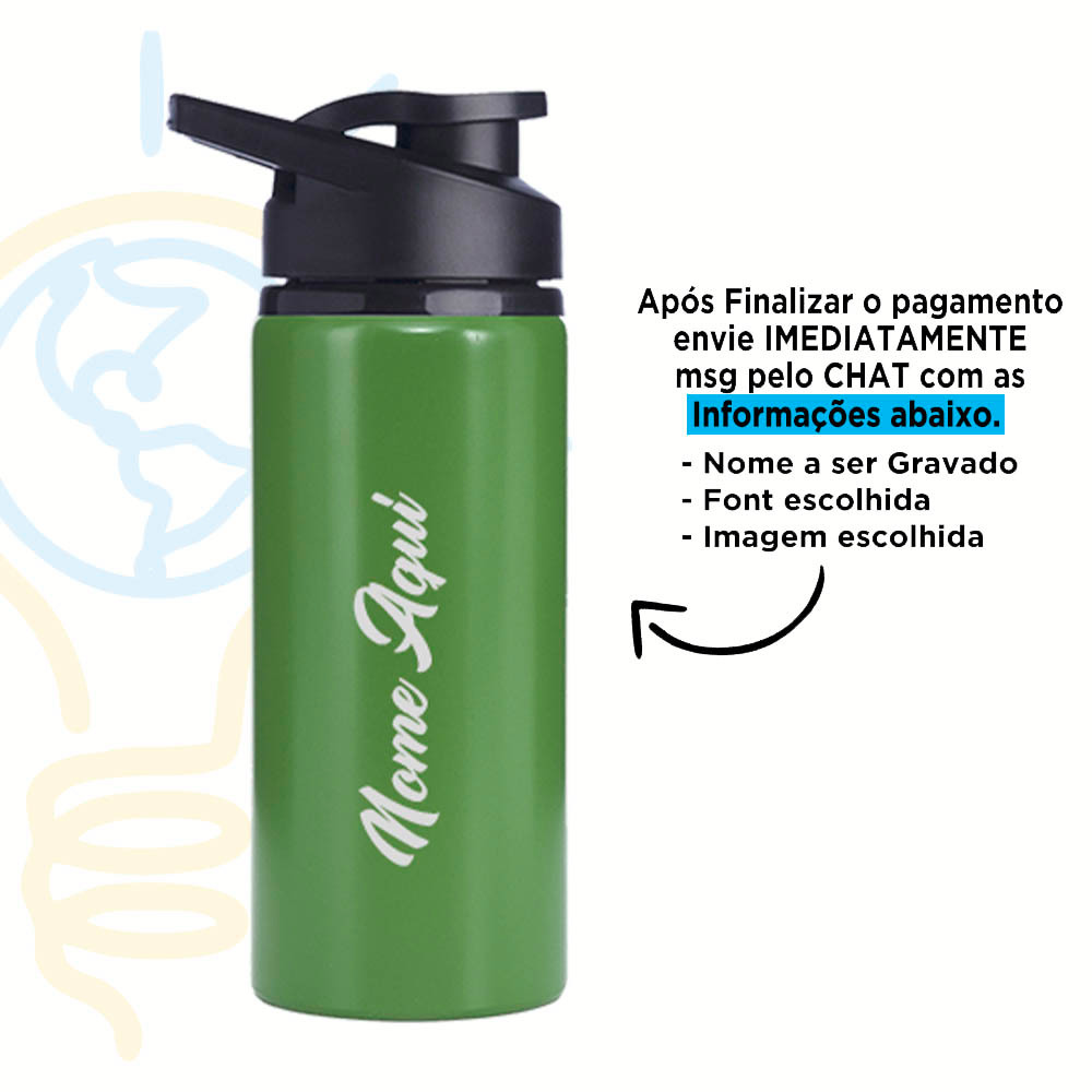 Squeeze Alumínio 600ml Personalizada Com Seu Nome