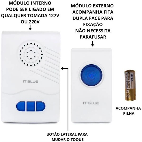 Campainha sonora a tomada (Diversos) 110/220v, resistente a água