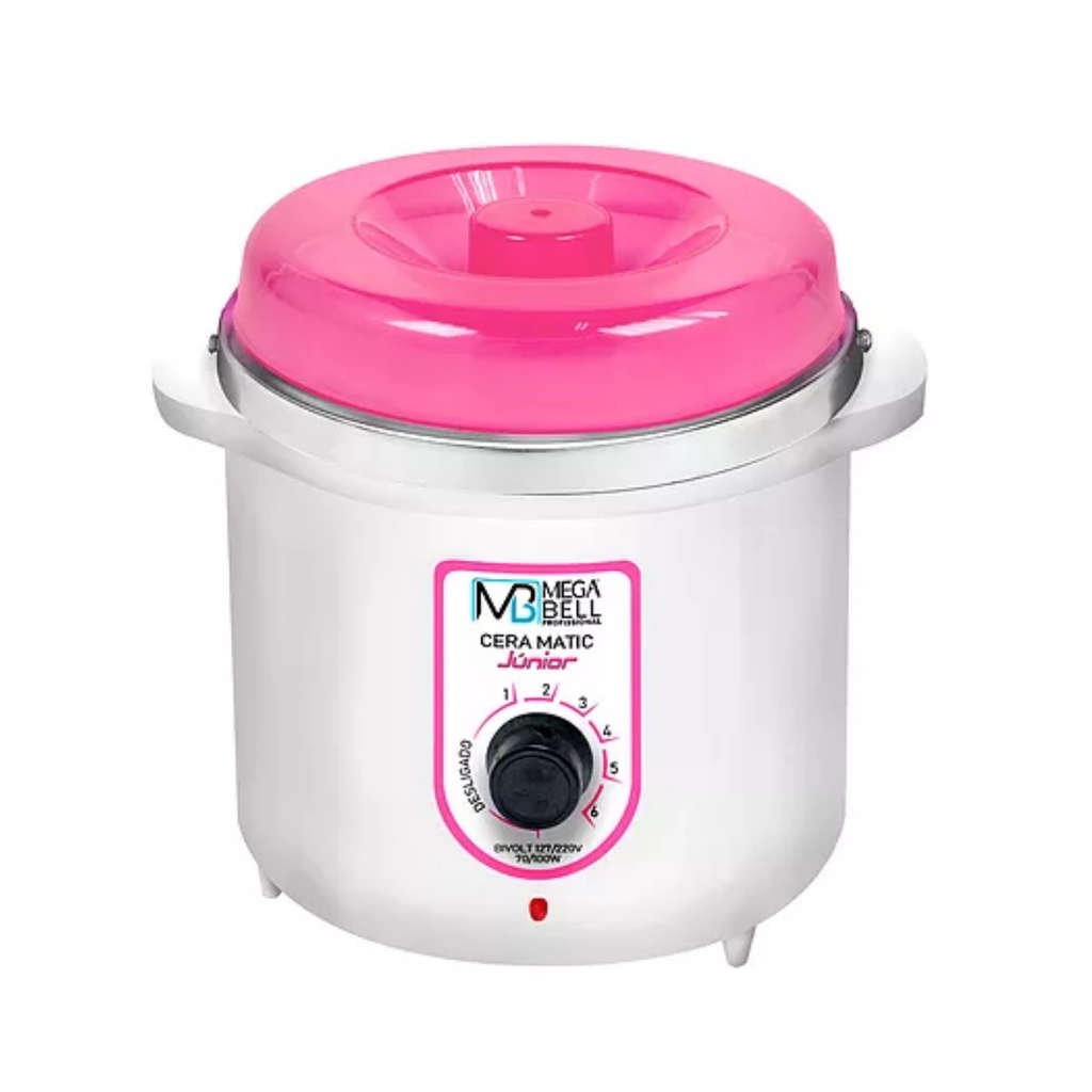 Kit Depilação Termocera 400gr Sem Refil Branca Com Rosa + Aquecedor de Cera Roll-on Rosa Mega Bell