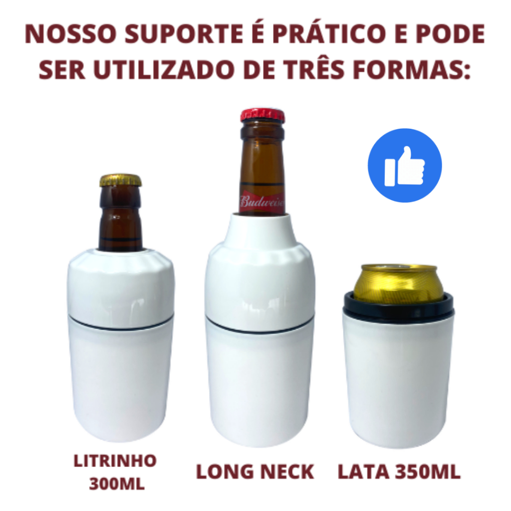 Porta Lata Suporte 3x1 Cerveja Long Neck Litrinho 300ml Térmico Festa Feminino