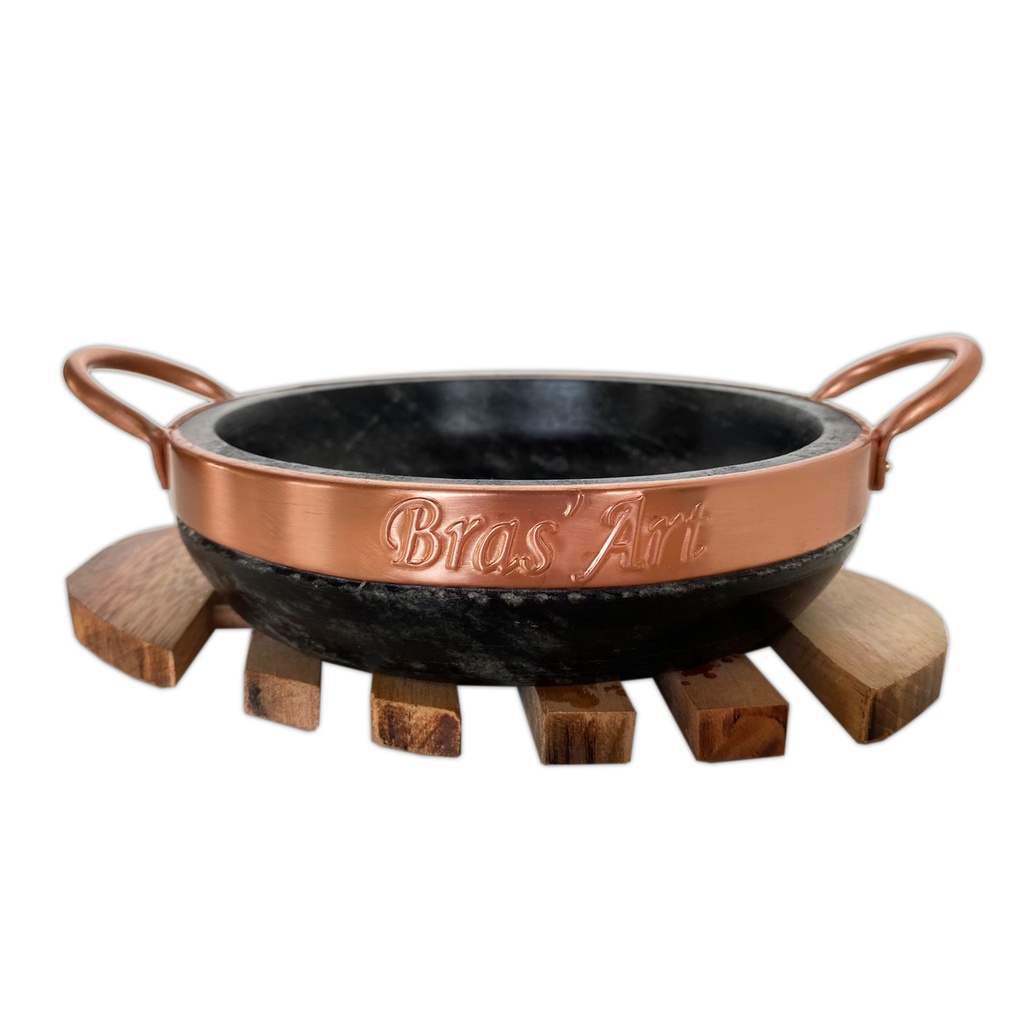 Frigideira De Pedra Sabão Linda E Charmosa Com Descanso De Madeira
