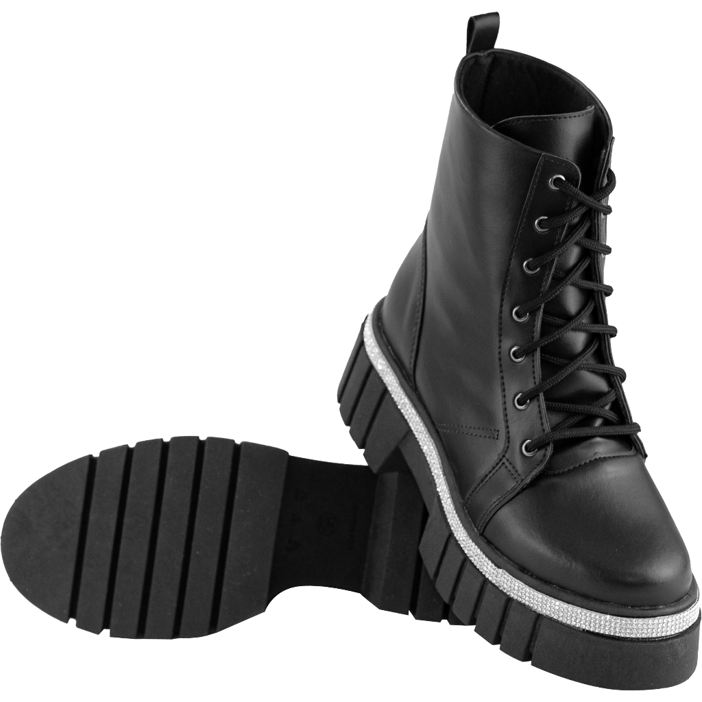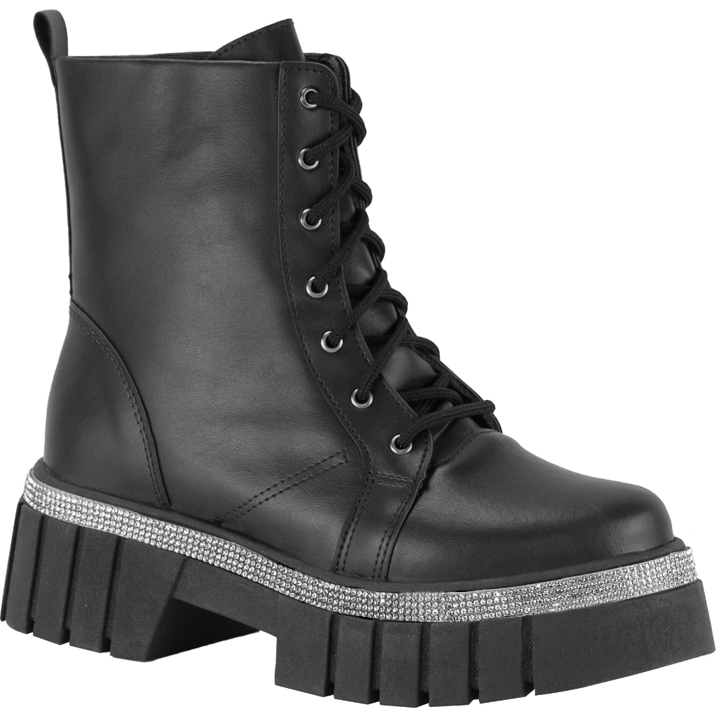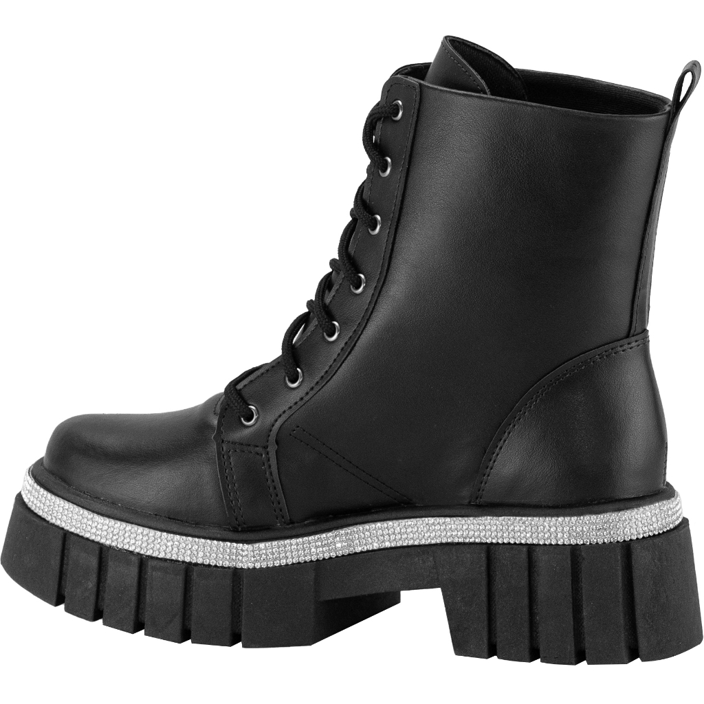 Coturno Feminino Lumiss Tratorado Plataforma Strass Brilho Cristal Cano Curto Flatform Blogueira Confortável Fashion
