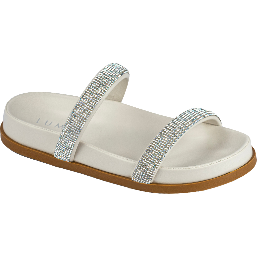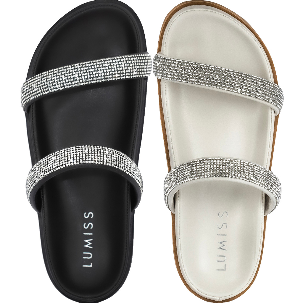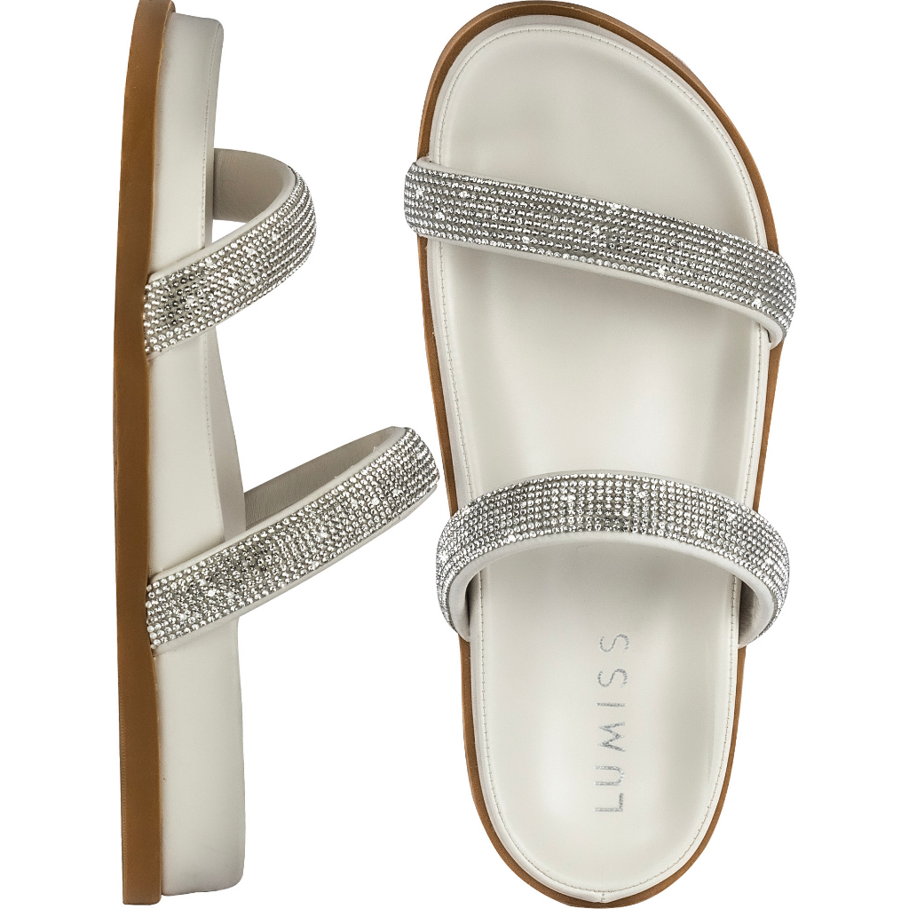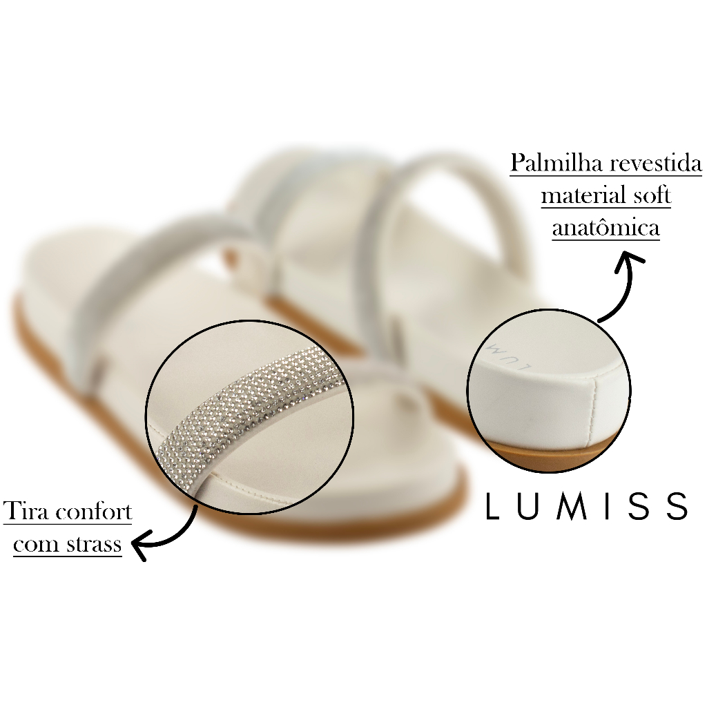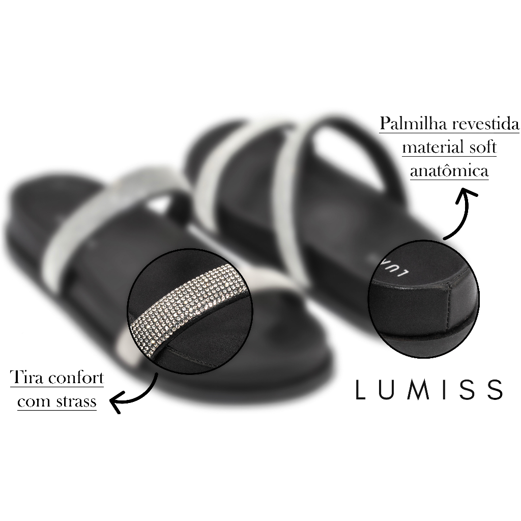 Sandália Papete Feminina Lumiss Flat Strass Brilho Cristal Confortável Anatômica Flatform Macia Slide Comfort