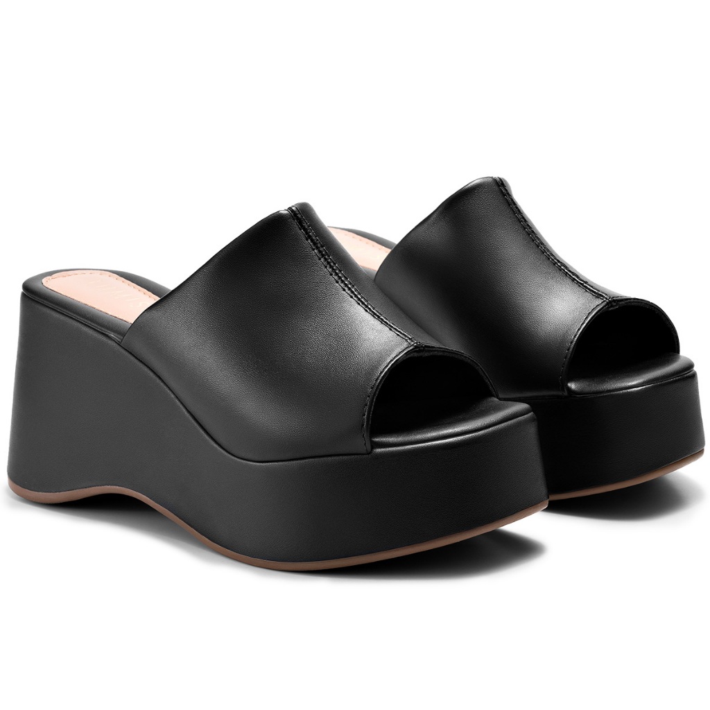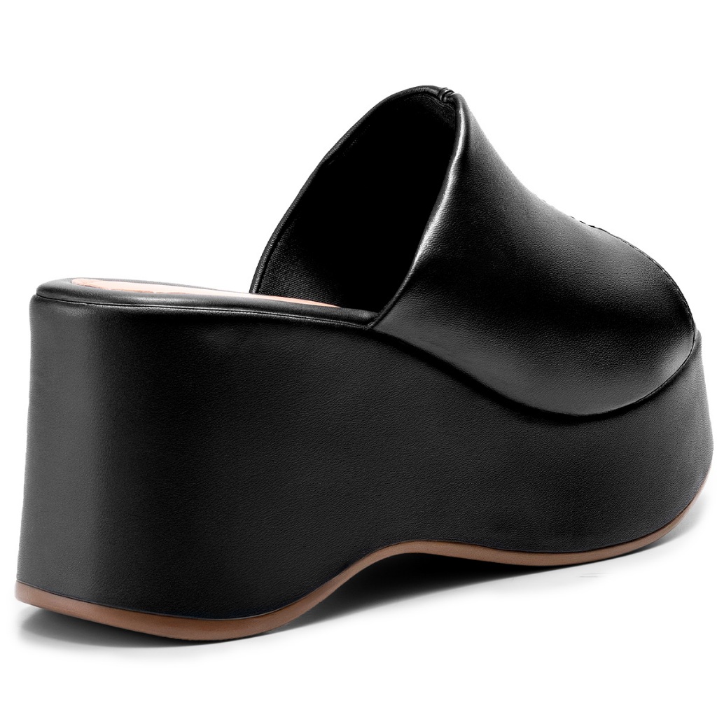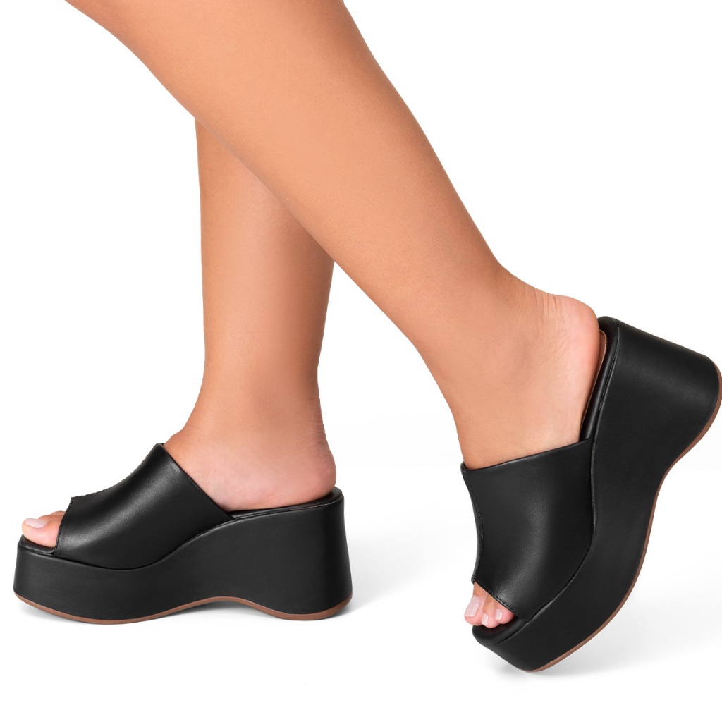 Sandália Feminina Lumiss Plataforma Tamanco Confortável Blogueira Anabela Preto