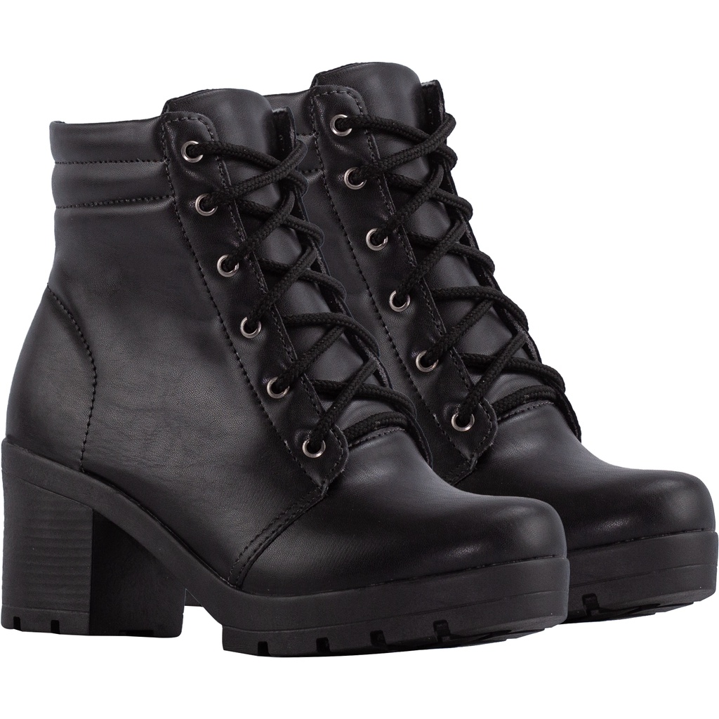 Coturno Feminino Lumiss Salto Grosso Tratorado Bota Cano Curto Confortável Blogueira Moda