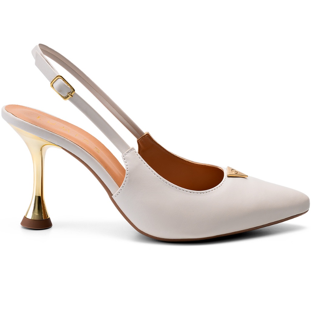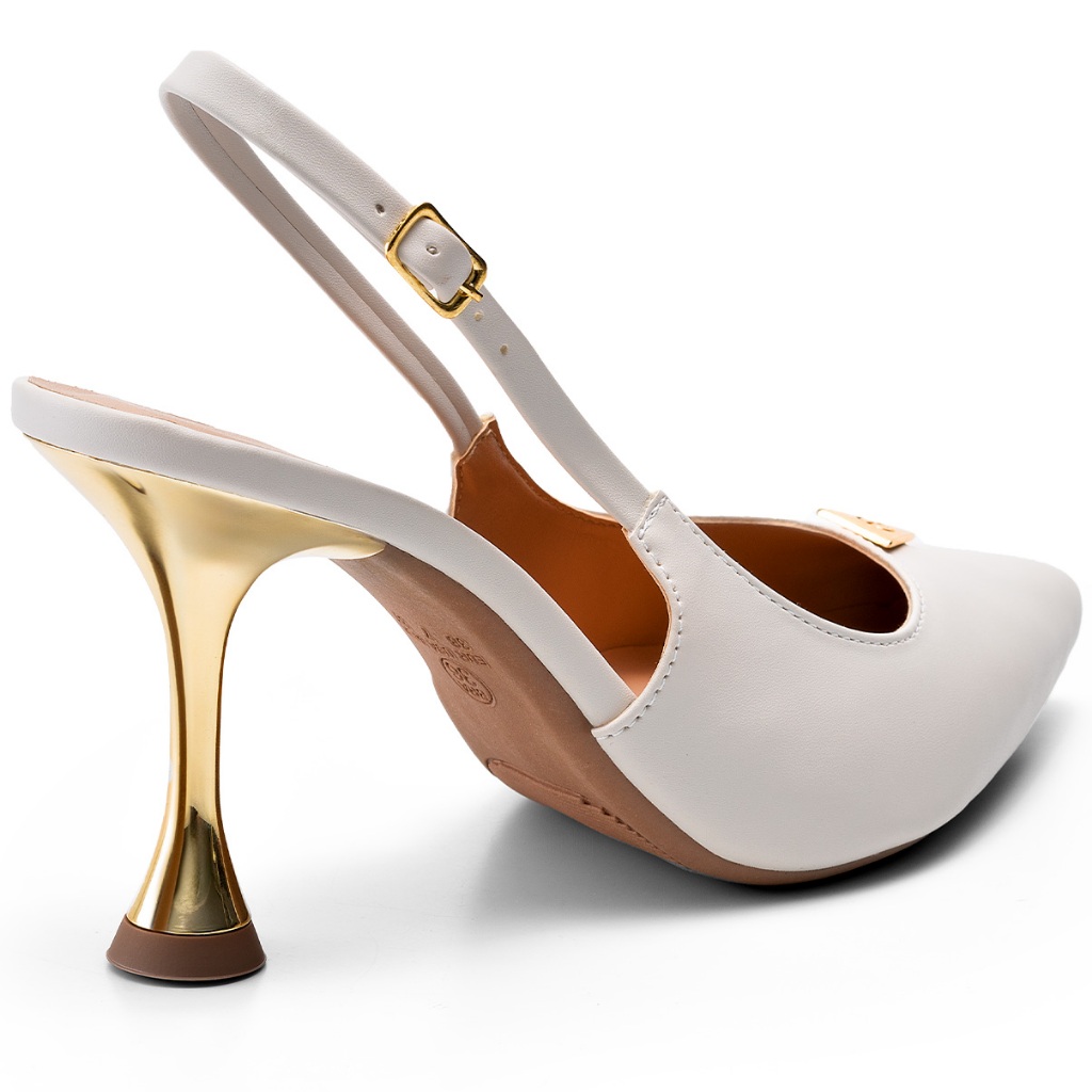Scarpin Feminino Lumiss Bico Fino Salto Alto Fino Metalizado Off White