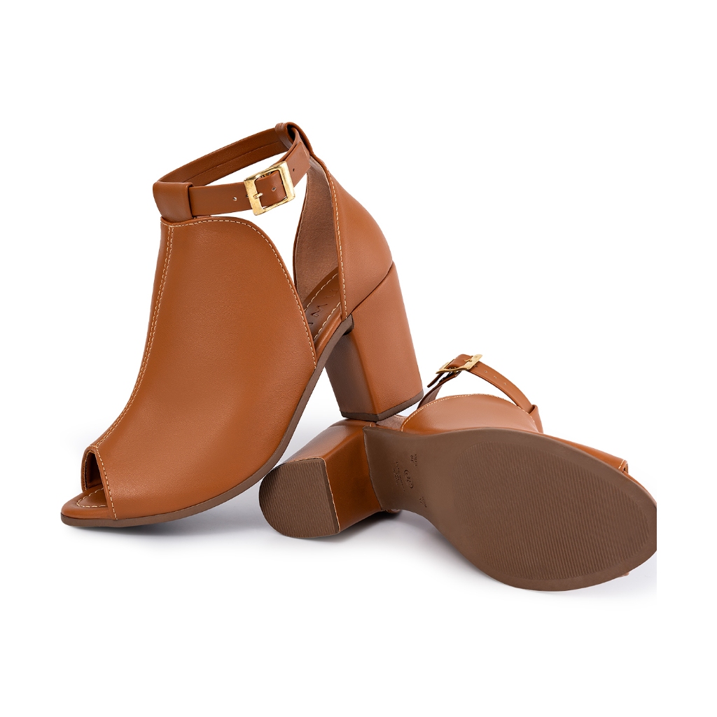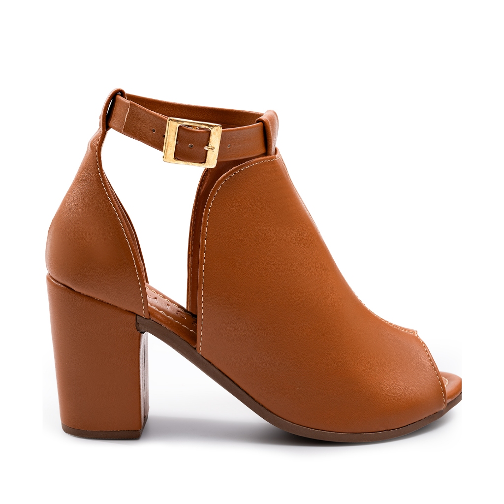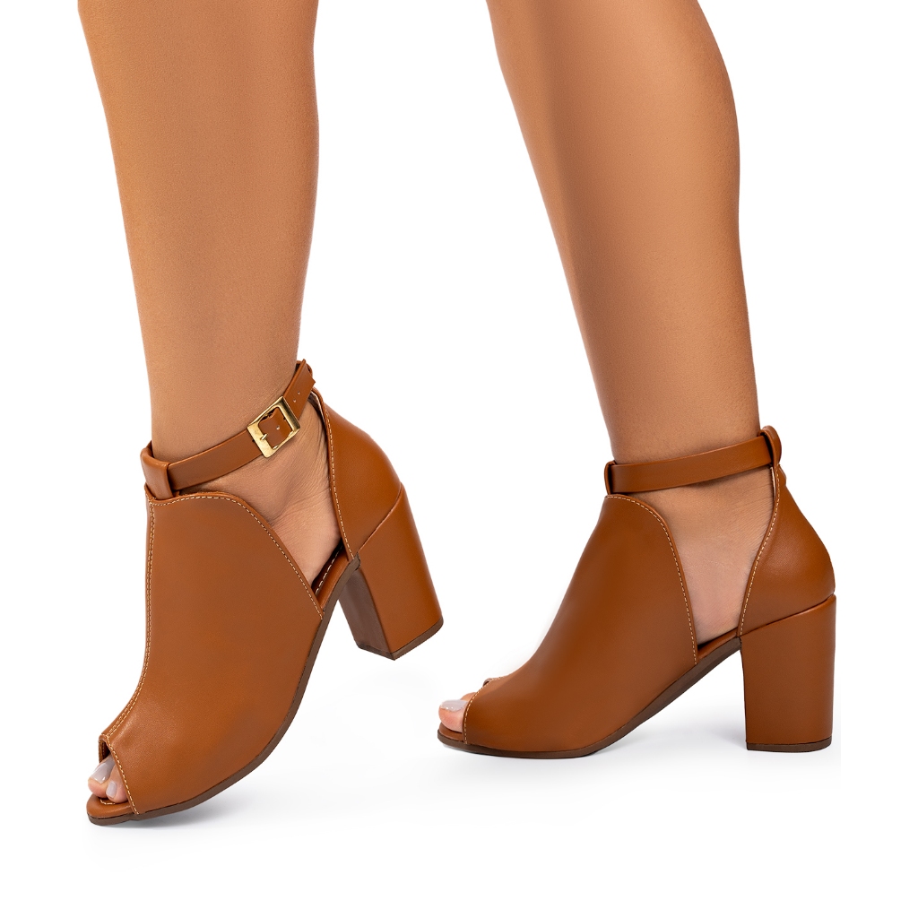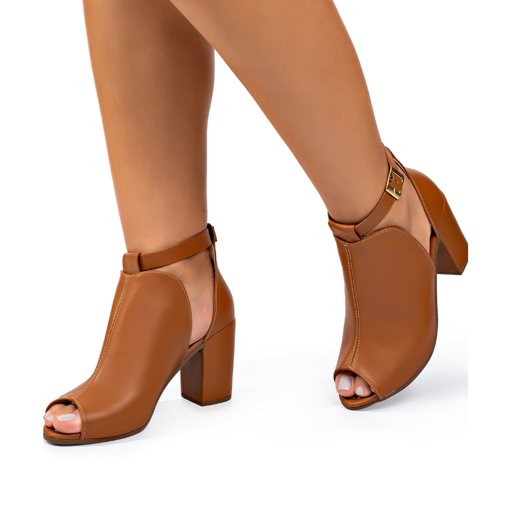 Sandália Feminina Lumiss Ankle Boot Fechada Salto Alto Grosso Confortável Marrom Caramelo