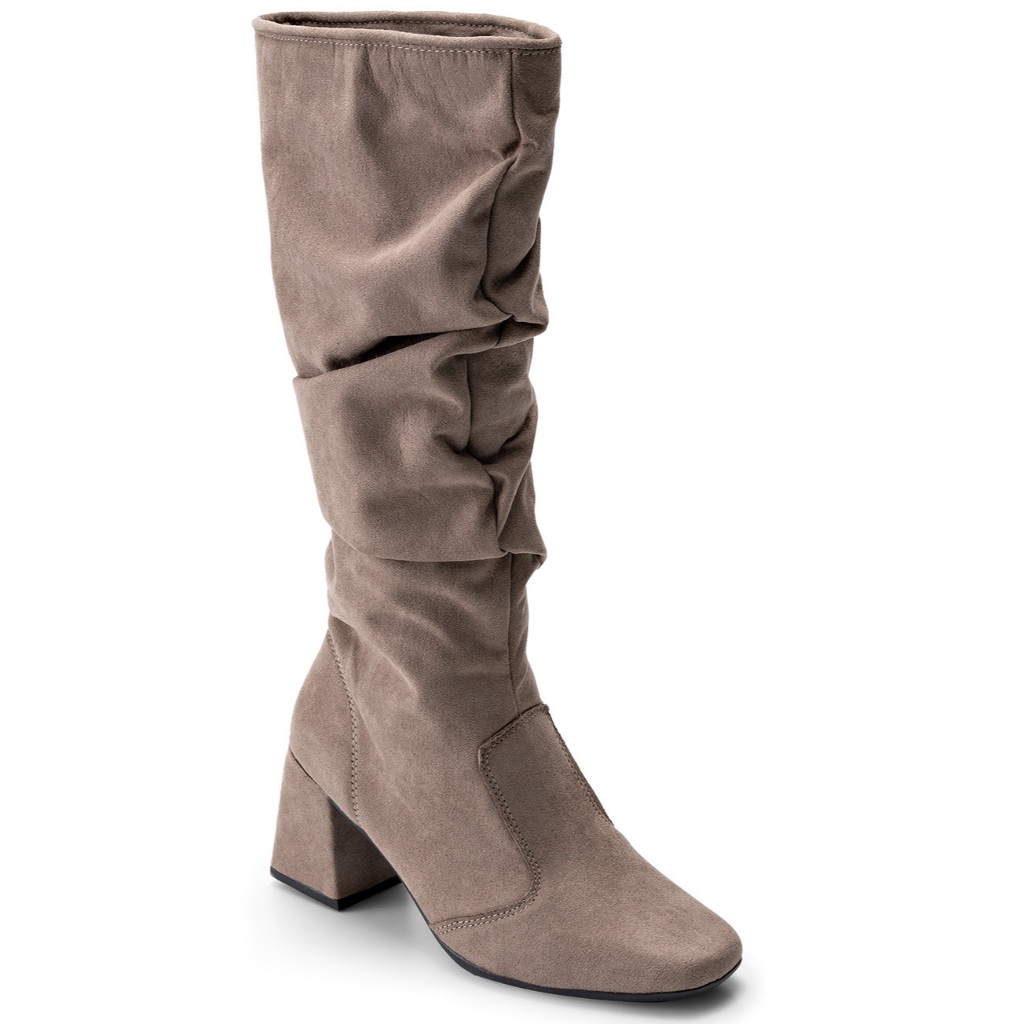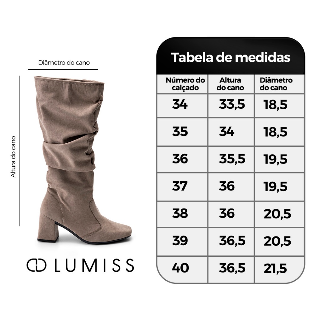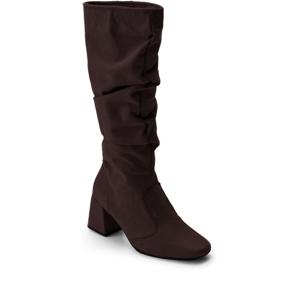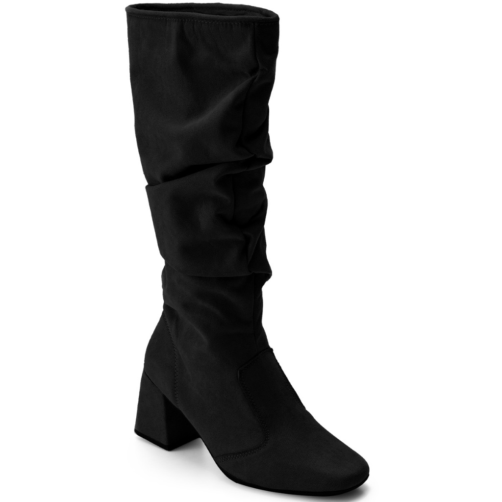 Bota Feminina Lumiss Camurça Suede Cano Alto Enrugado Salto Bloco Baixo Slouchy